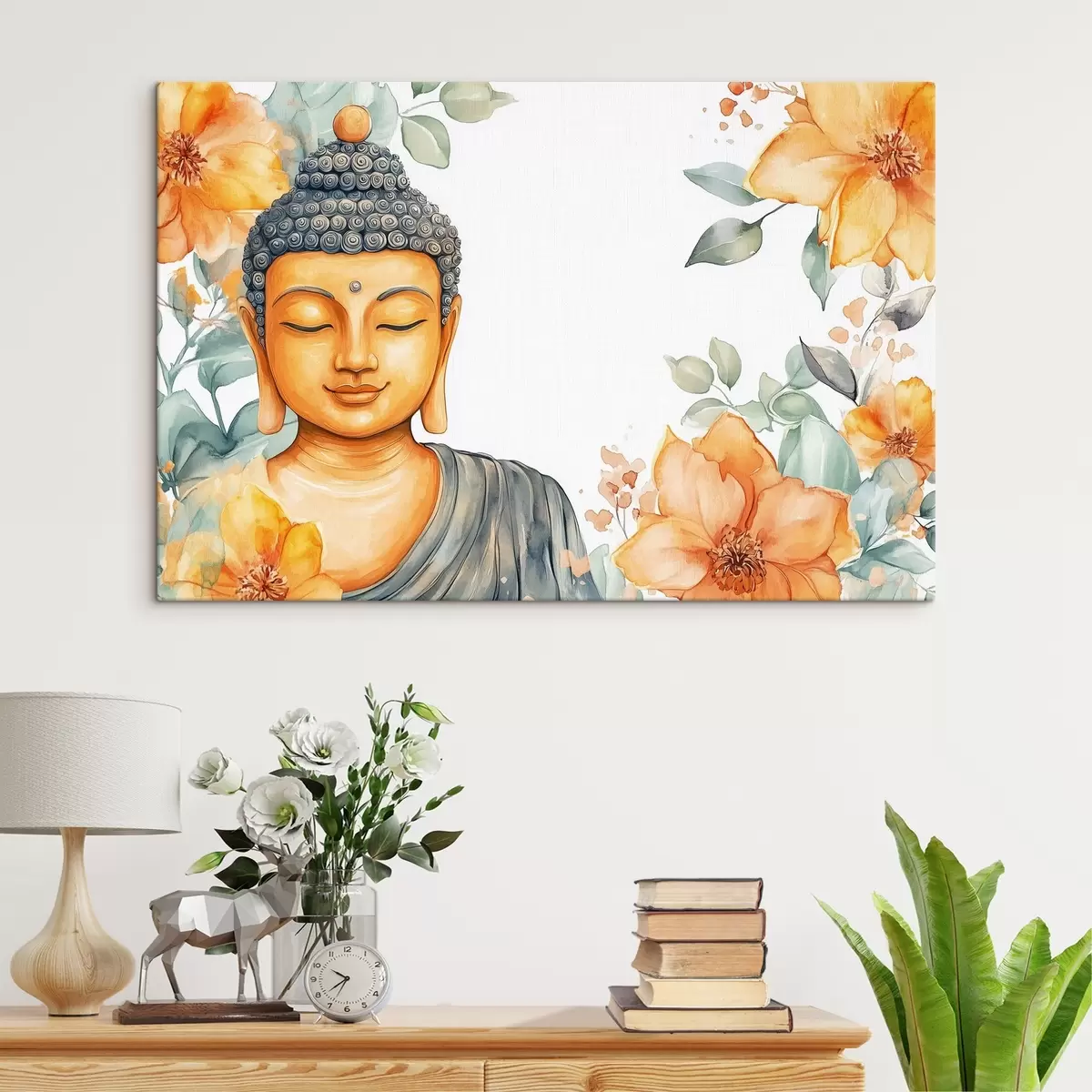 Cuadros Buda rodeado de flores naranjas, estilo acuarela Nr s44508