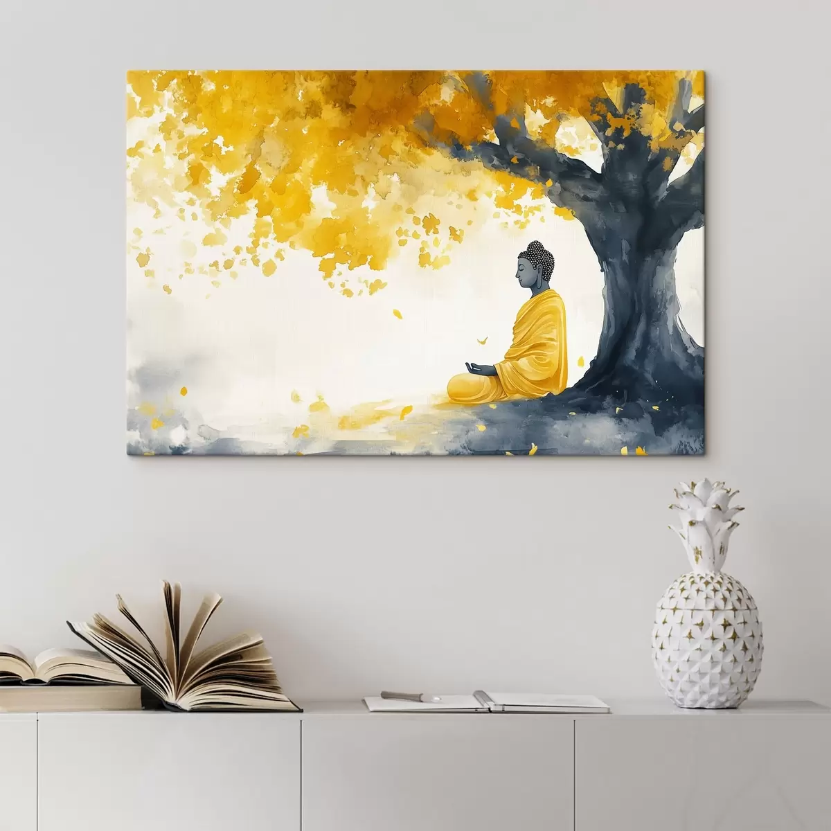 Cuadros Buda meditando bajo el árbol, colores amarillo y gris Nr s44509