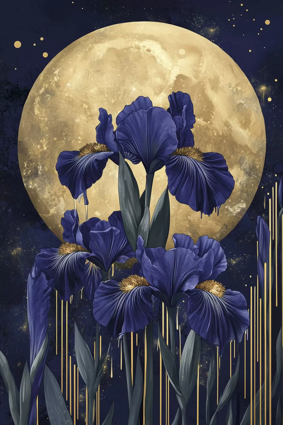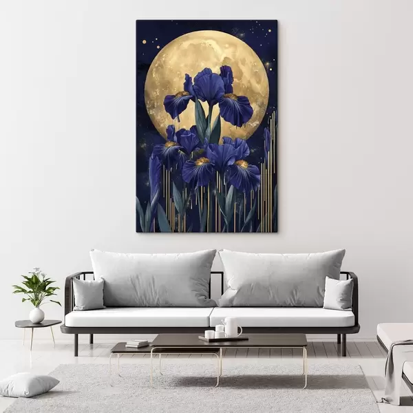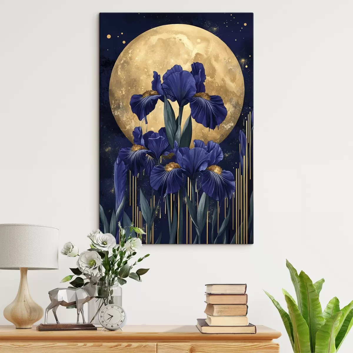 Cuadros Flores de iris, luna brillante, cielo nocturno, colores azules Nr s44510
