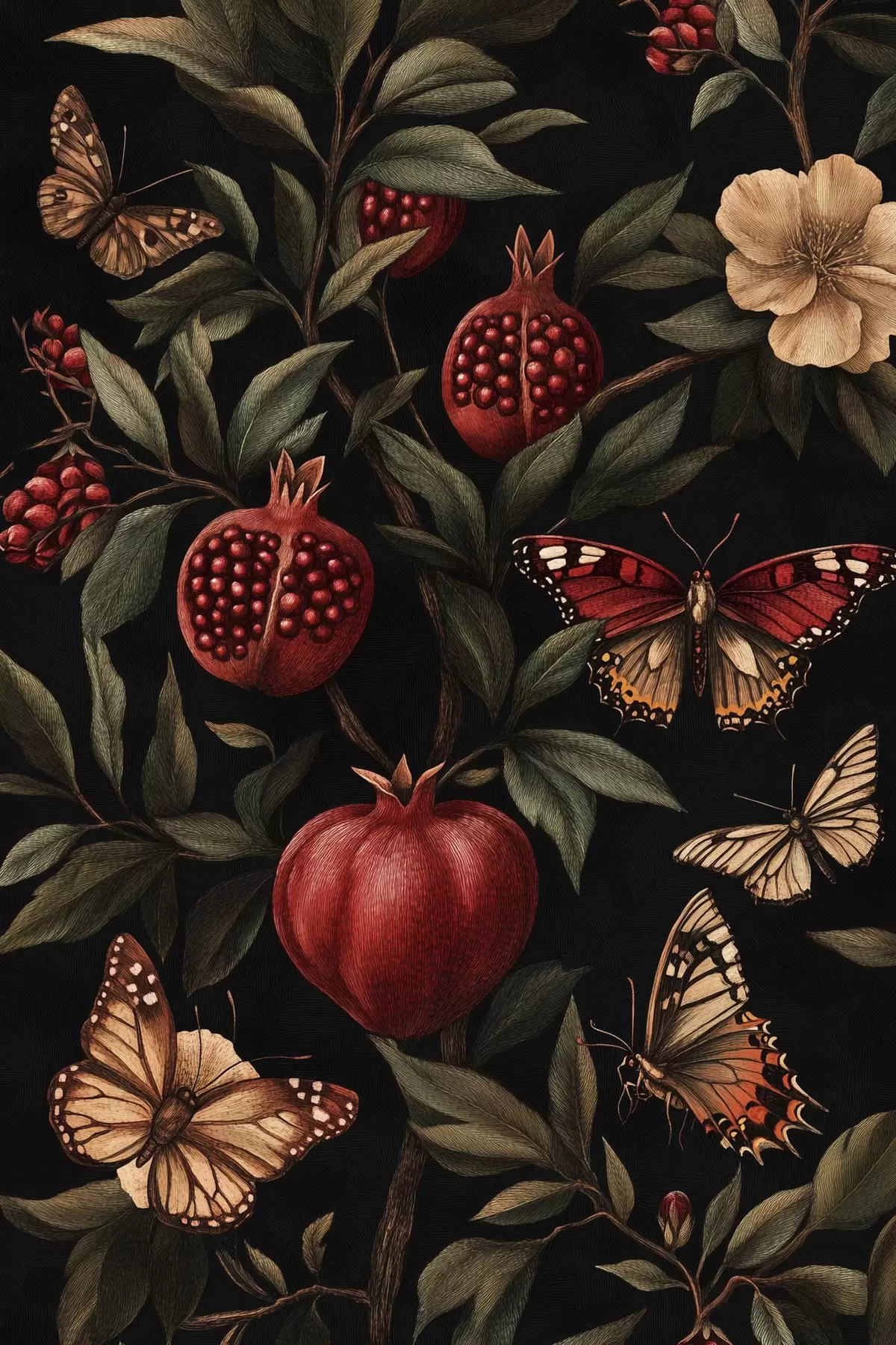 murales de pared Arte botánico con granadas y mariposas  s44511