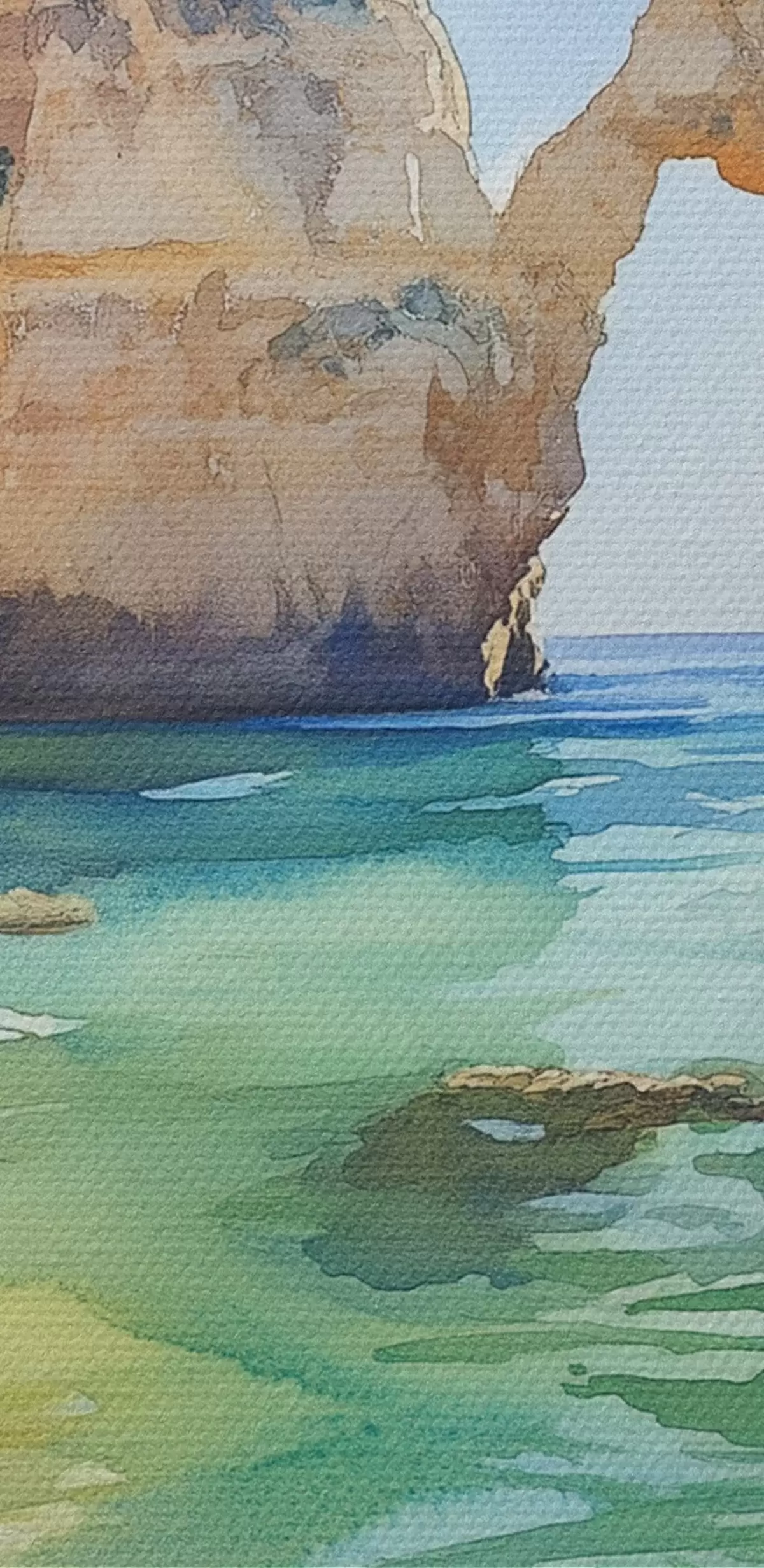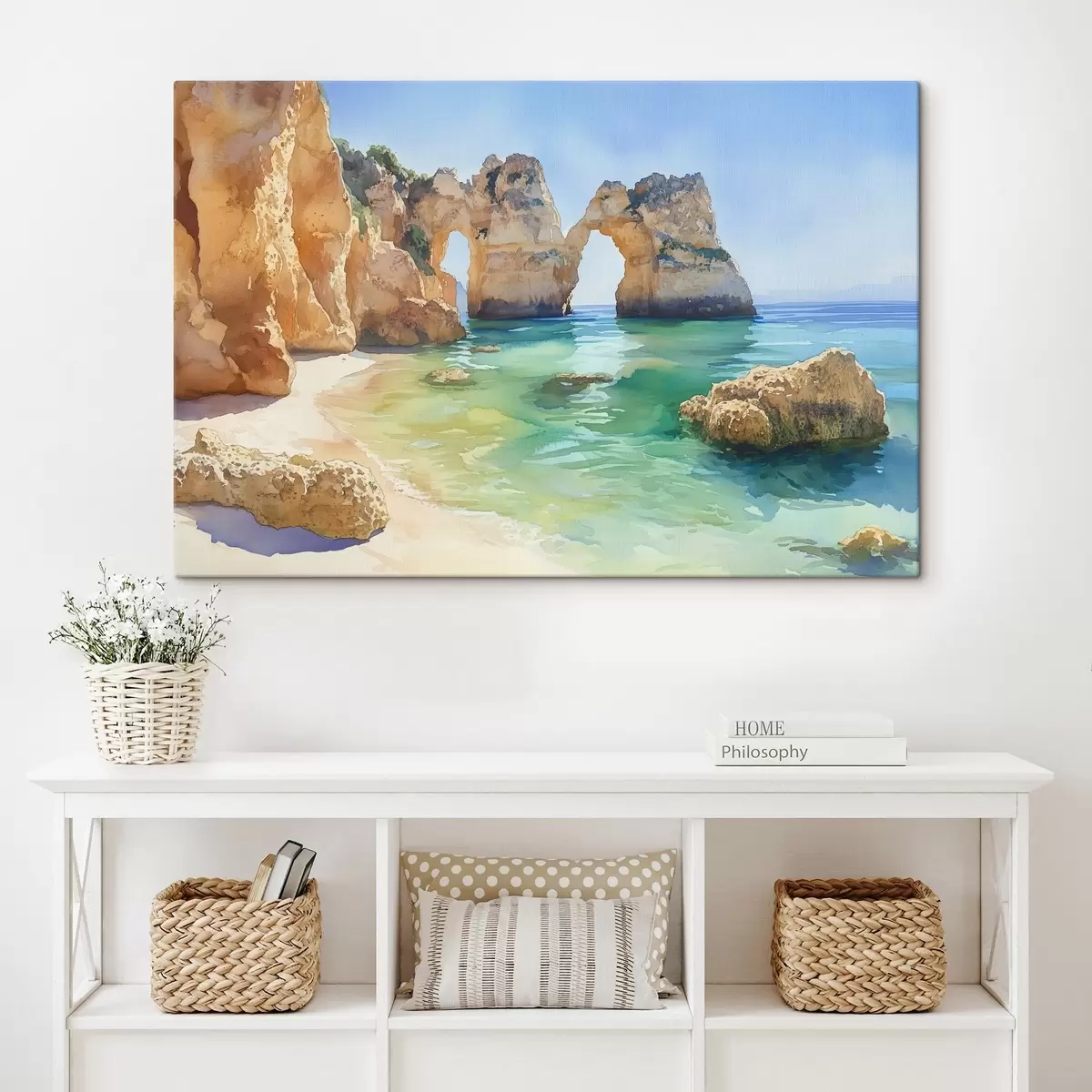 Cuadros Playa oceánica con acantilados rocosos, Portugal, verano, aguamarina Nr s44608