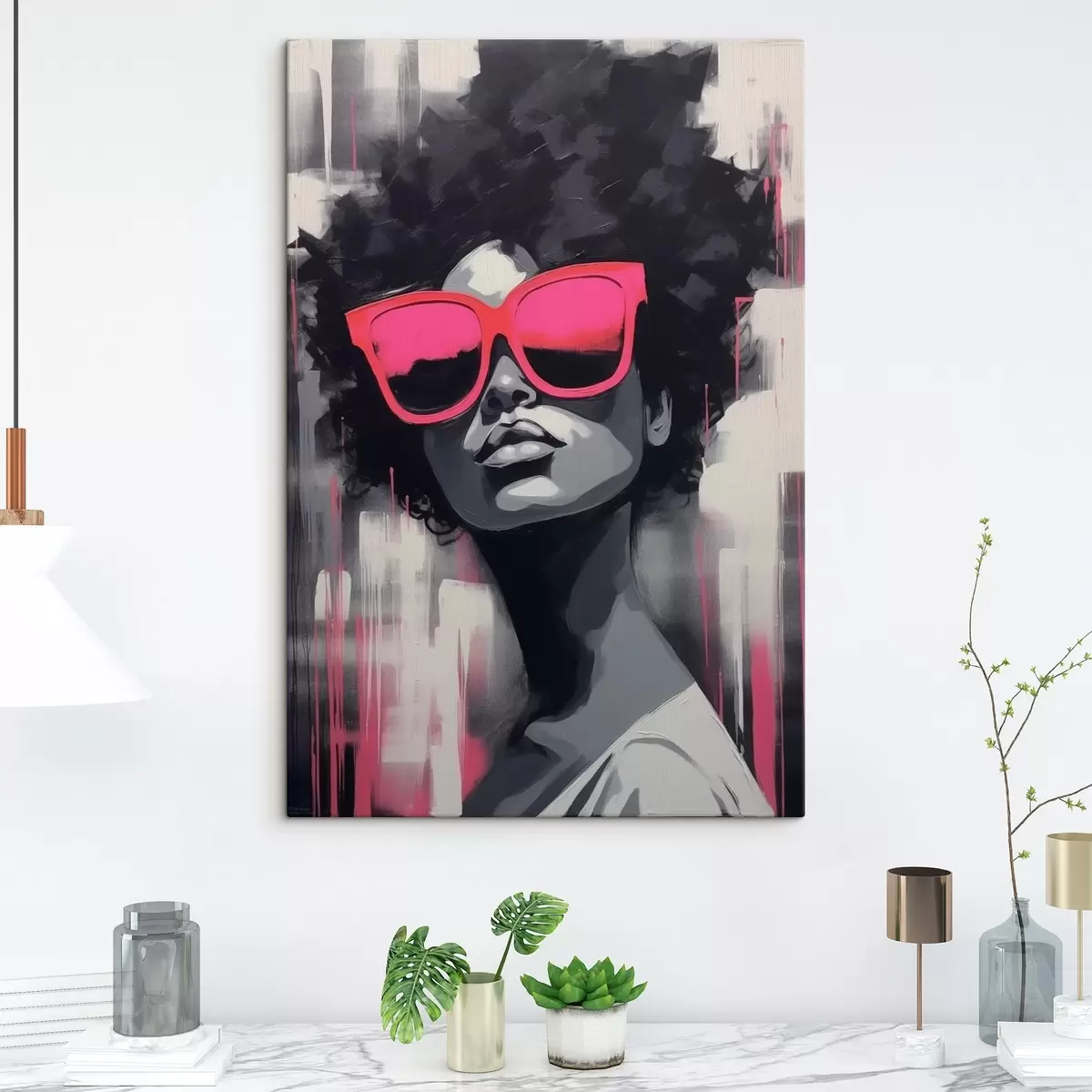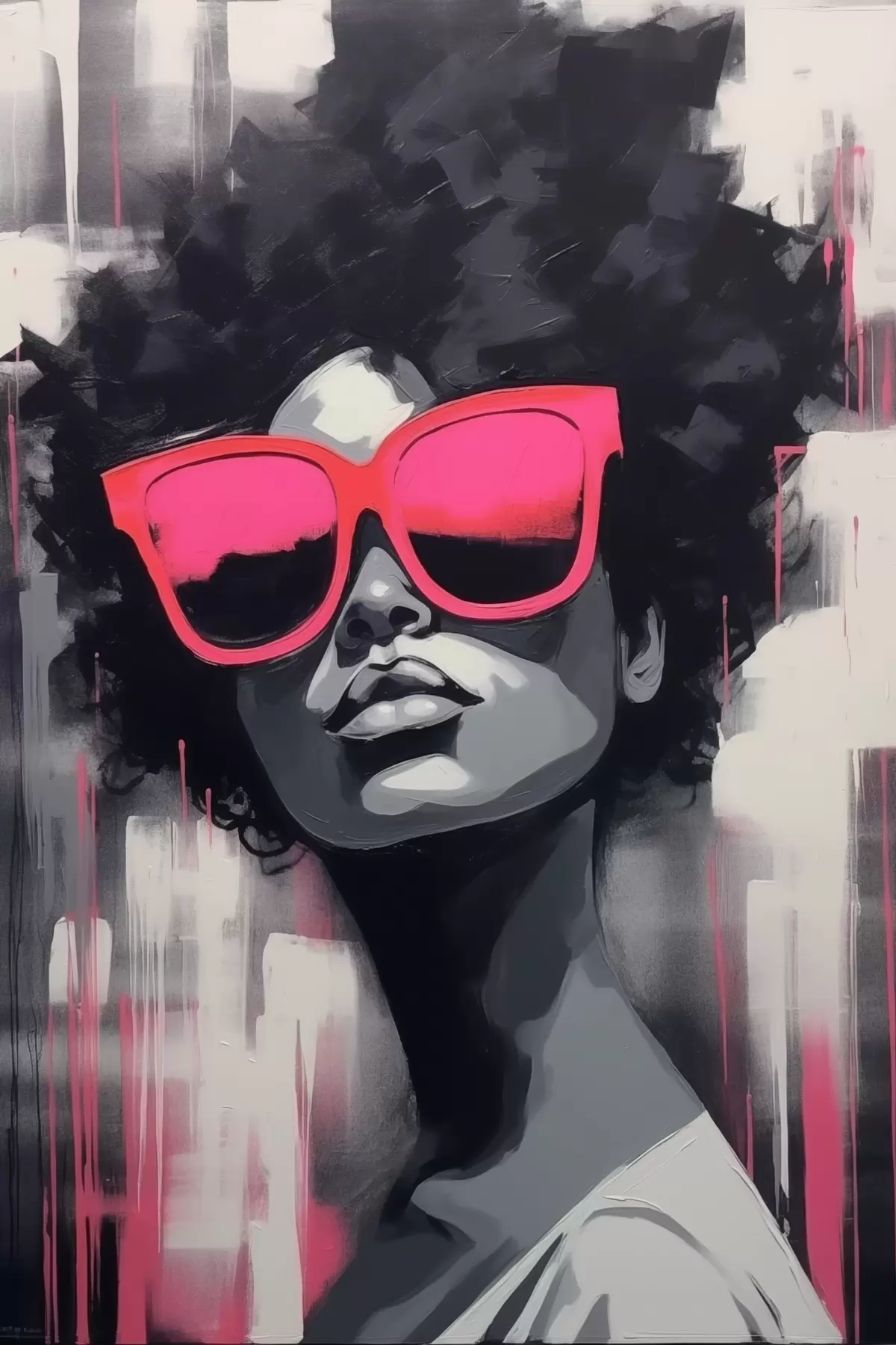 Cuadros Chica con gafas rosas, estilo blanco y negro Nr s44624