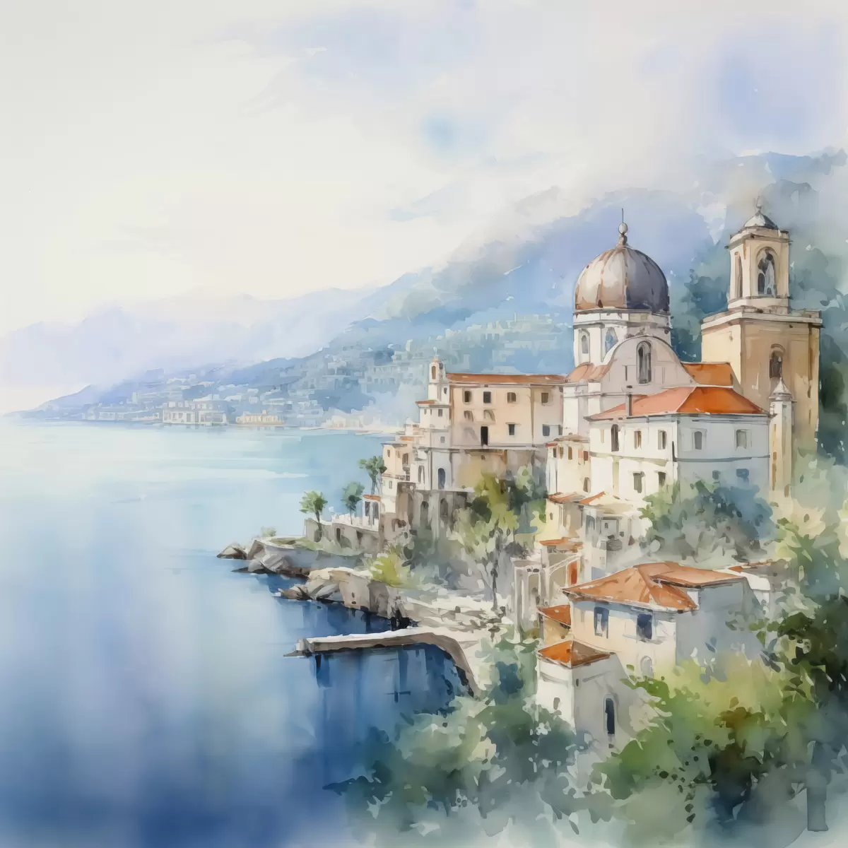 murales de pared Ciudad junto al mar imitación de acuarela s44635