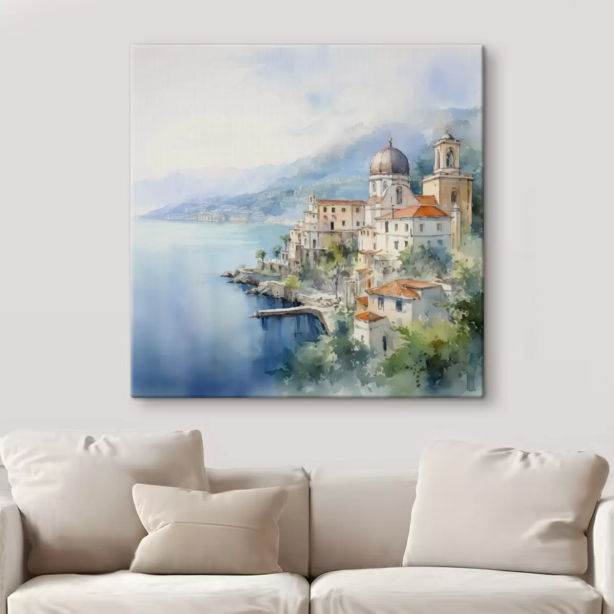 Cuadros Ciudad junto al mar imitación de acuarela Nr s44635