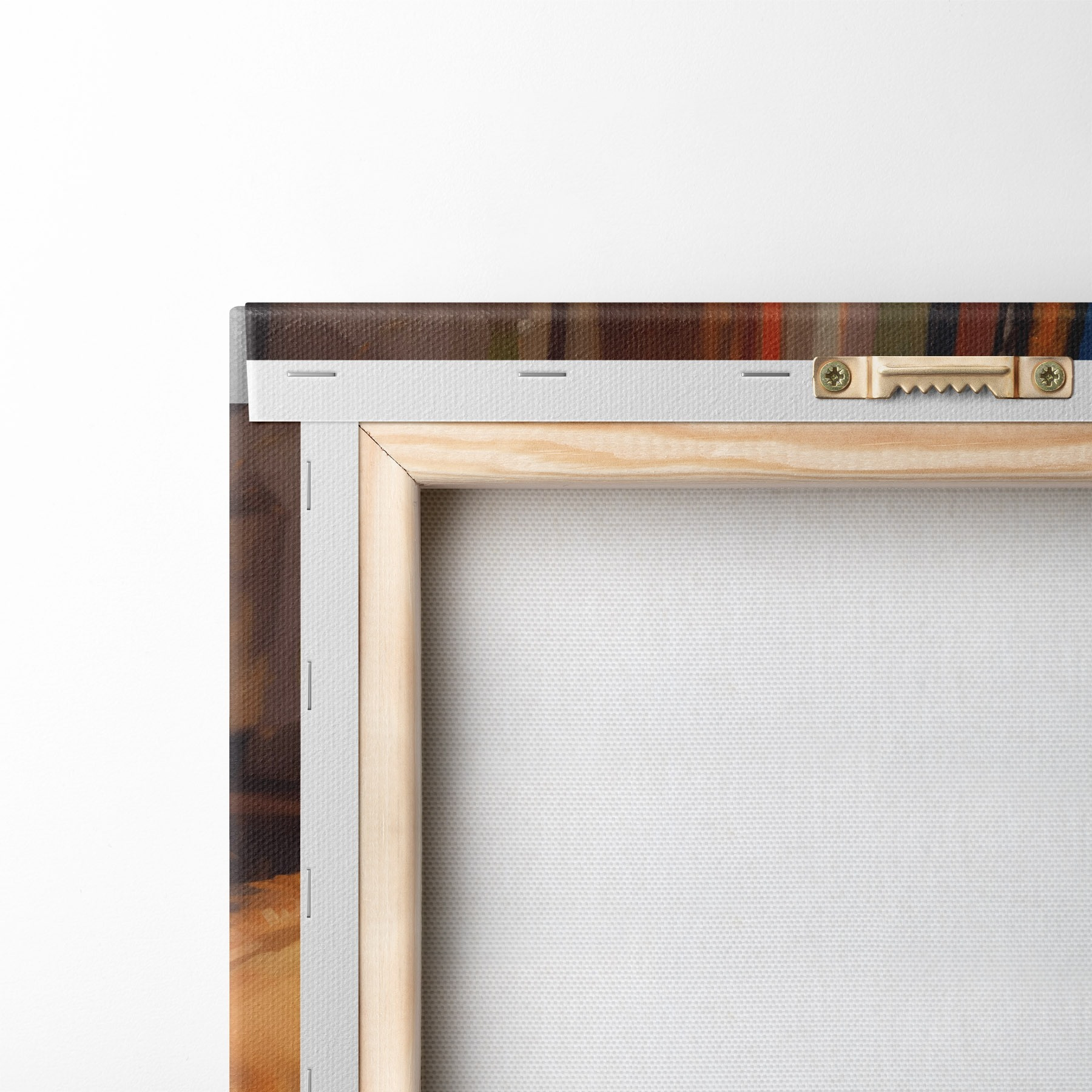 Vendemos cuadros en bastidor: se trata de un marco de madera sobre el que se extiende el lienzo. Este cuadro no necesita marco; puedes colgarlo directamente en la pared.