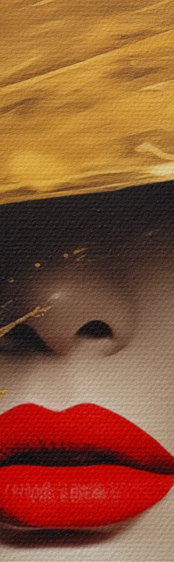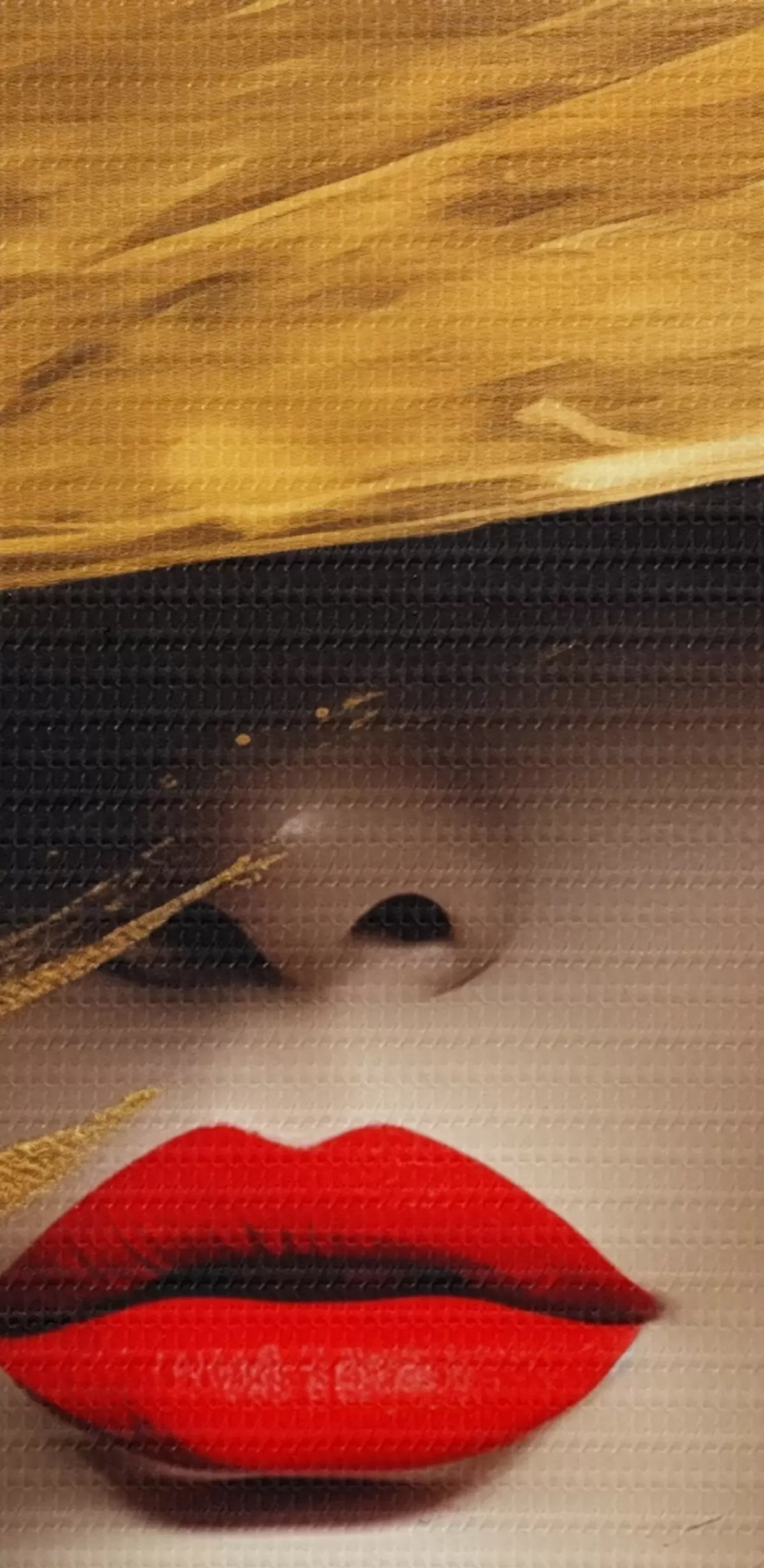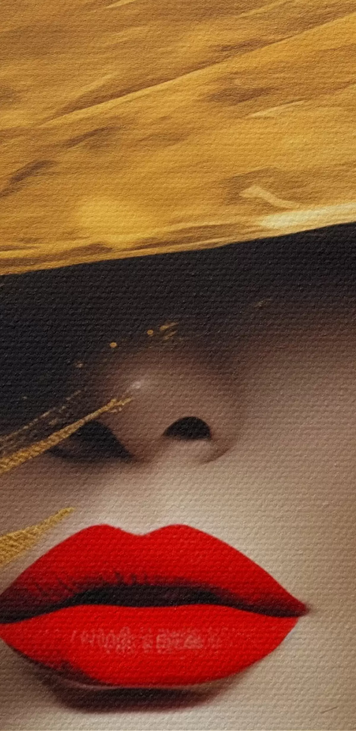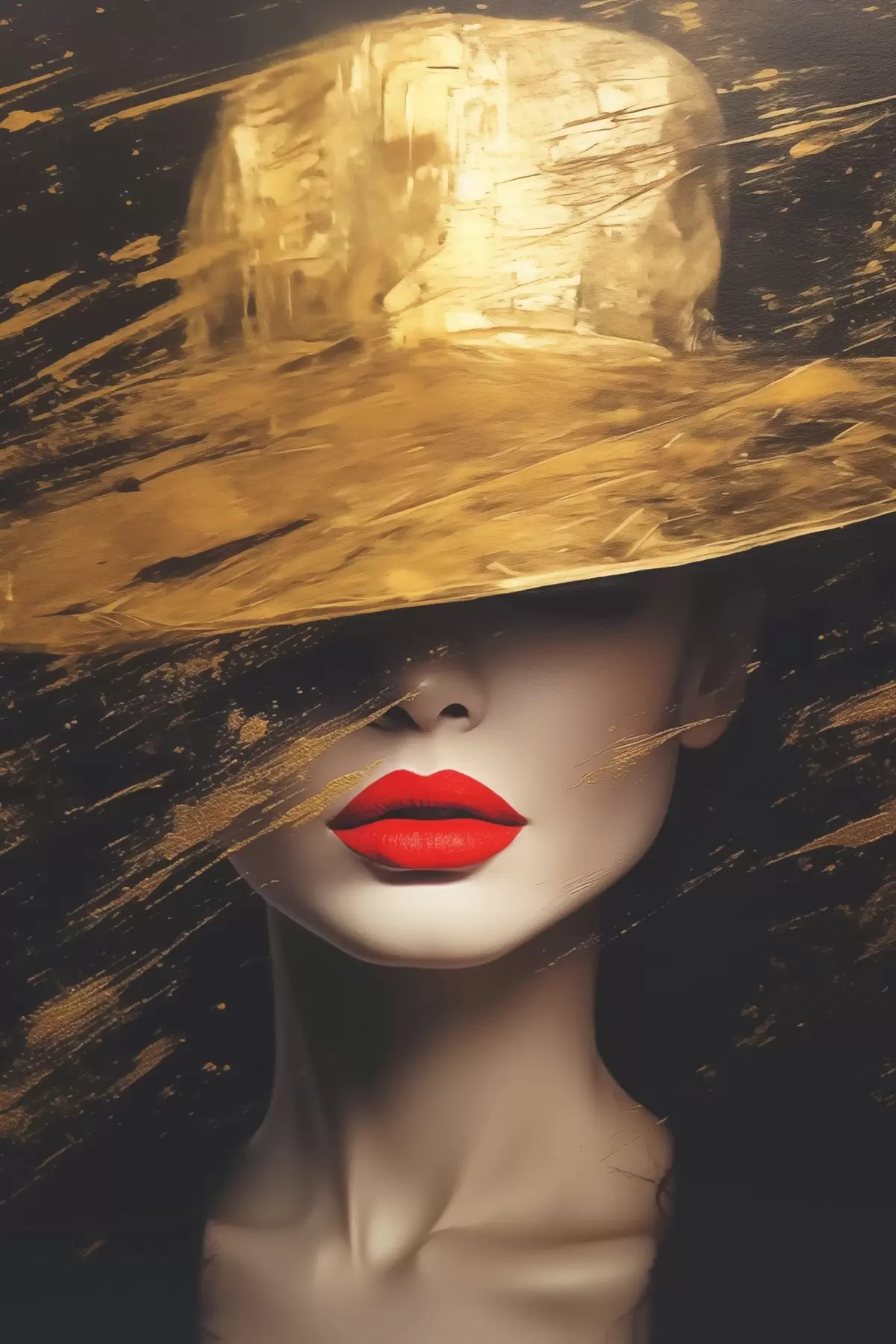 Cuadros Rostro femenino con pintalabios rojo bajo sombrero ancho Nr s44691