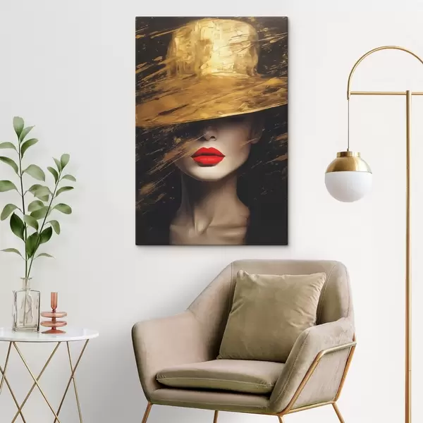 Cuadros Rostro femenino con pintalabios rojo bajo sombrero ancho Nr s44691