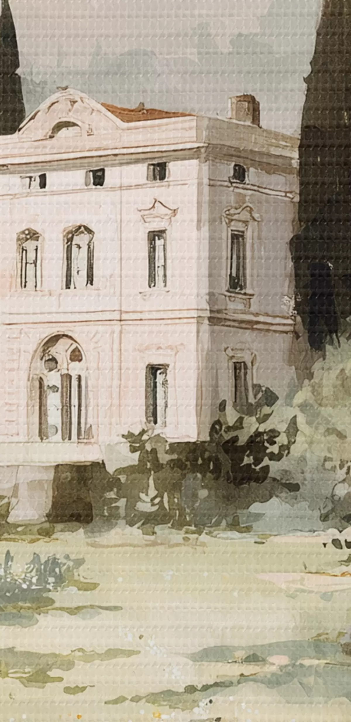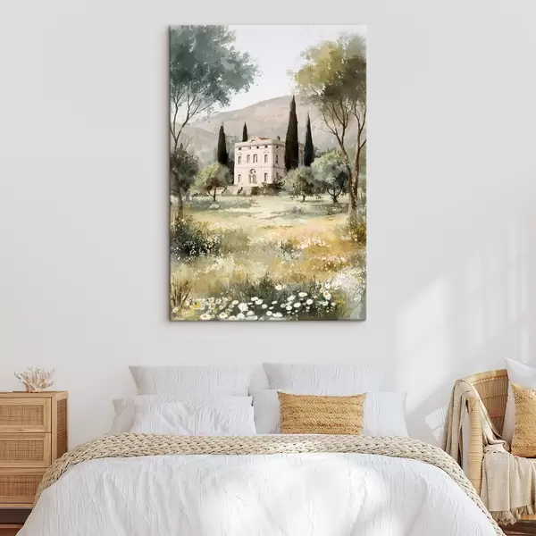 Cuadros Pueblo mediterráneo con casa blanca rodeada de jardín Nr s44796