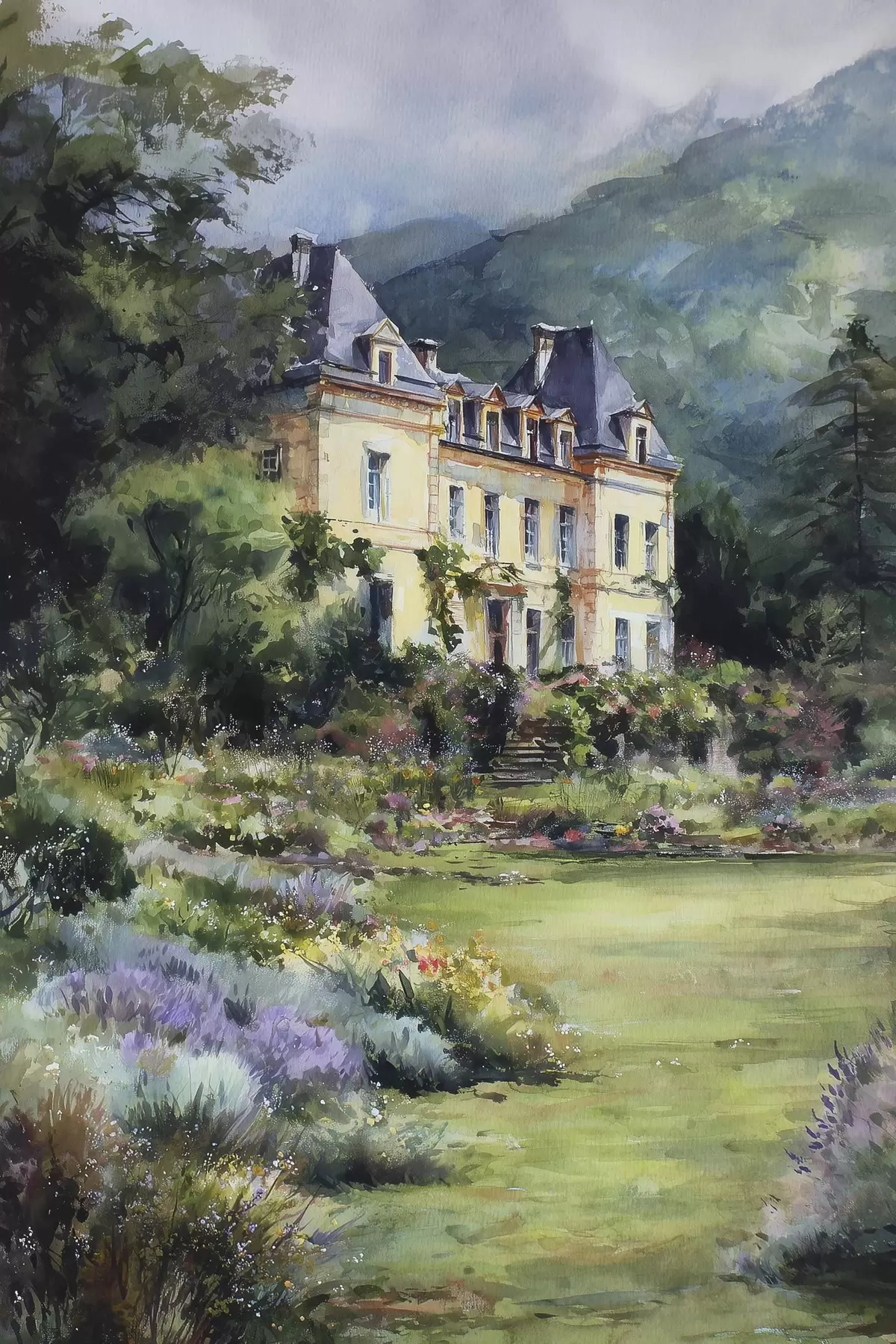 Cuadros Castillo francés rodeado de un jardín con lavanda Nr s44797