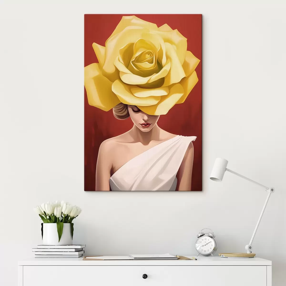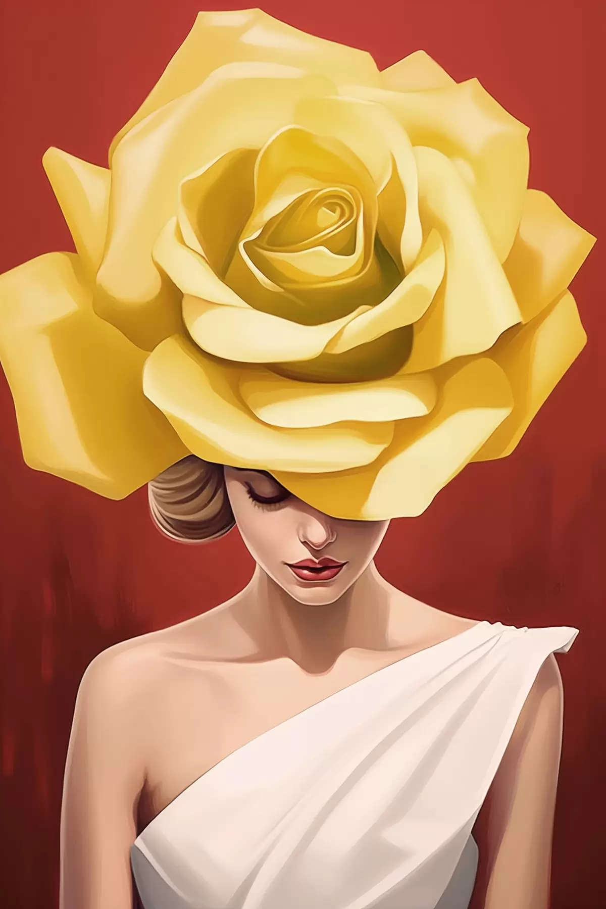murales de pared Mujer con sombrero rosa amarillo s44800