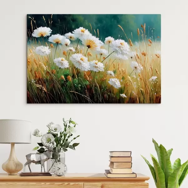 Cuadros Flores blancas en un prado al óleo Nr s44842