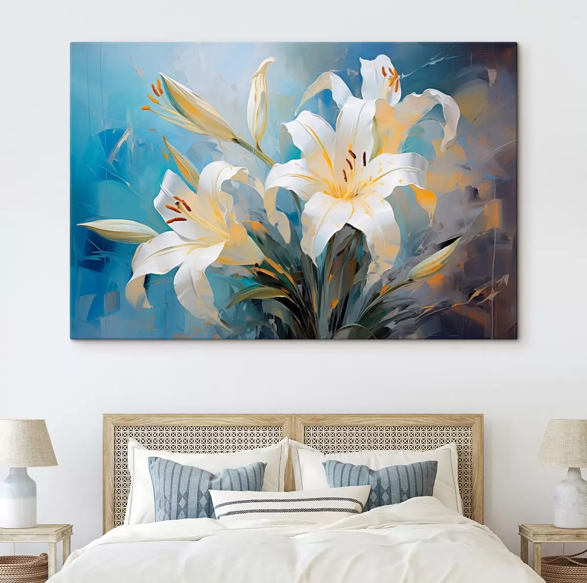 murales de pared Lirios abstractos sobre fondo colorido en estilo artístico s44849