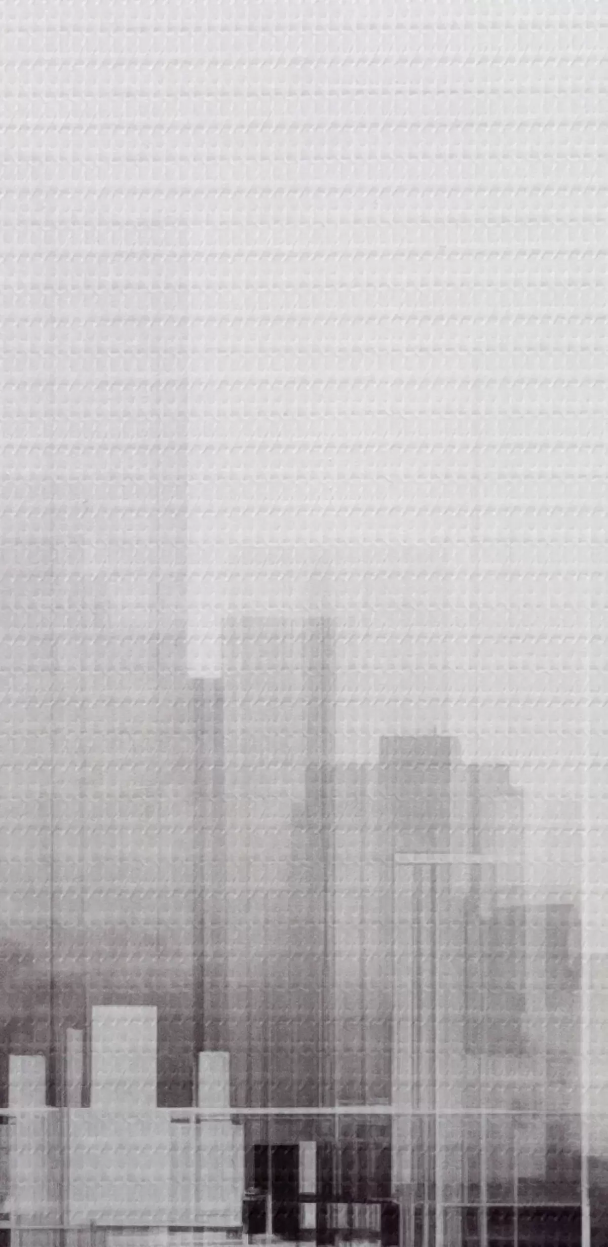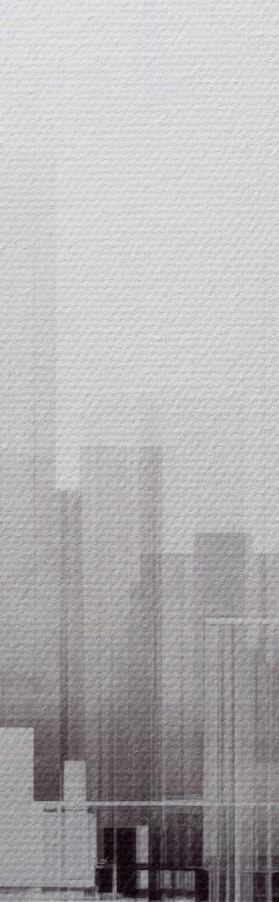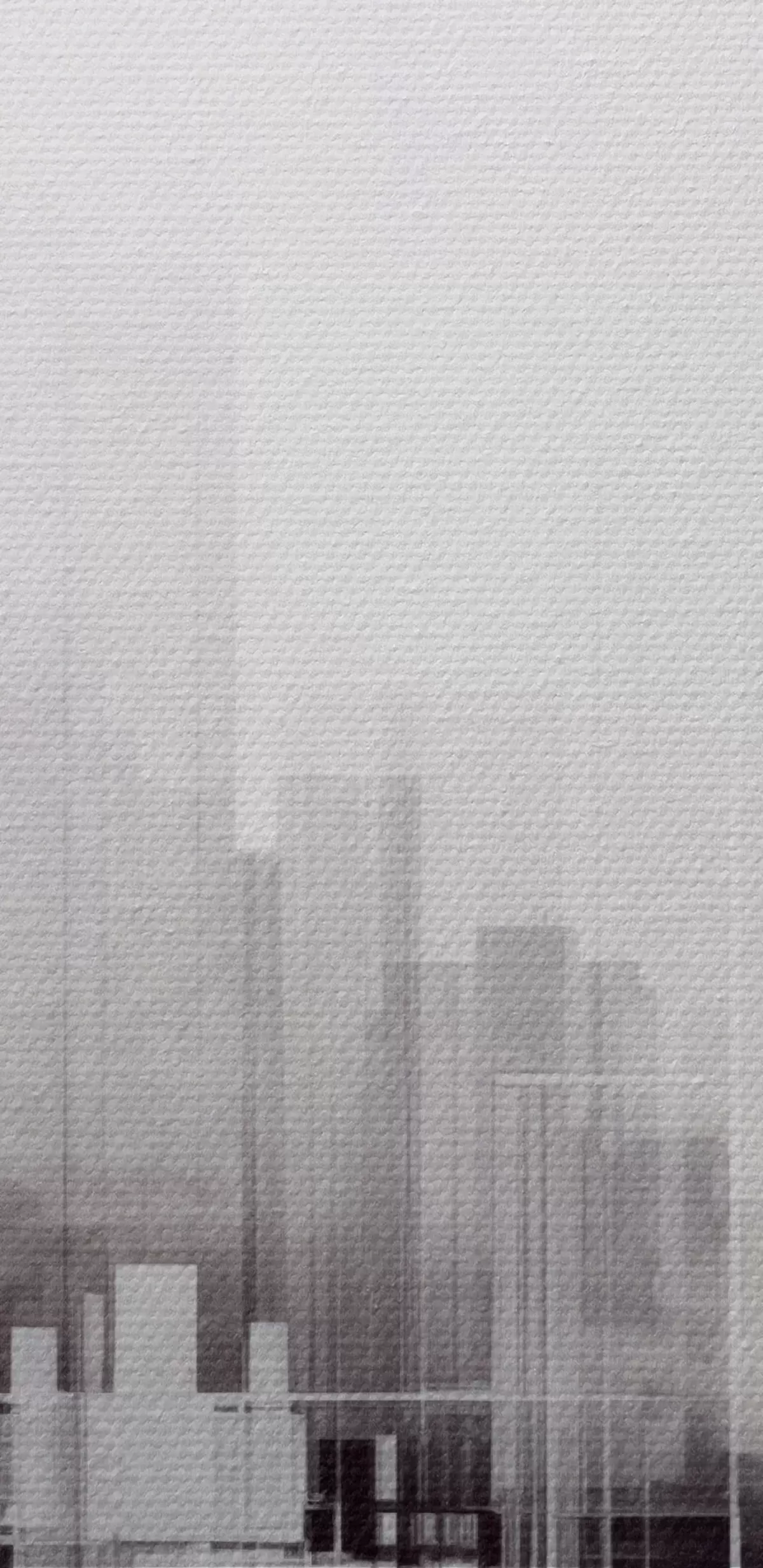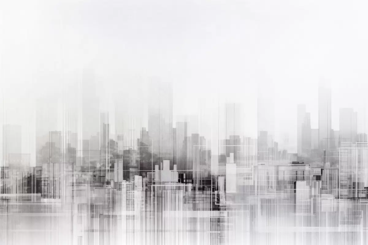 Cuadros Paisaje urbano minimalista texturizado con edificios altos y rascacielos, silueteados contra un cielo blanco Nr s44863