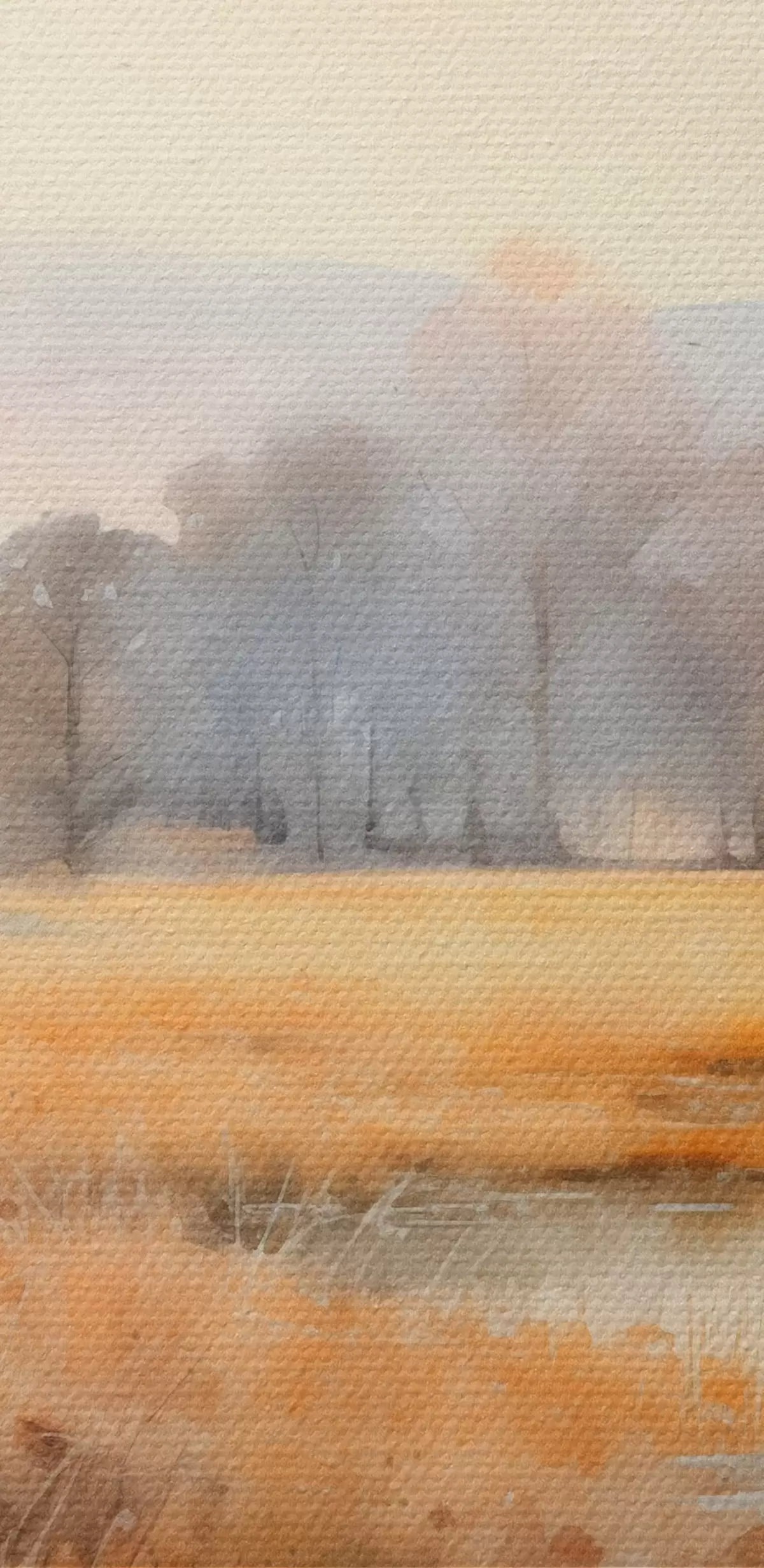 Cuadros Una pintura de paisaje de textura tranquila imitación de juncos y árboles desnudos, el agua tranquila bajo un cielo Nr s44867
