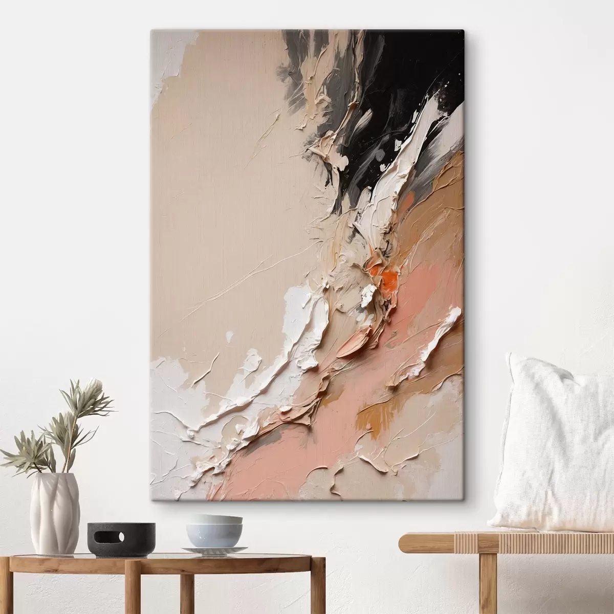 Cuadros Abstracción en beige y negro con toques de rosa y blanco Nr s44875