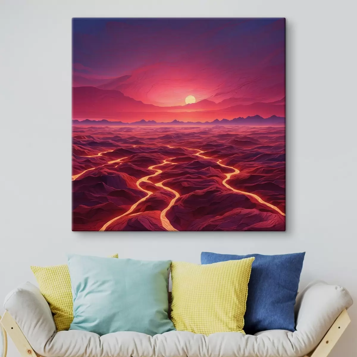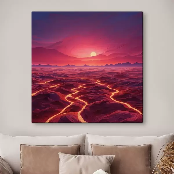 Cuadros Paisaje caliente con coladas de lava bajo un cielo rojo Nr s44886