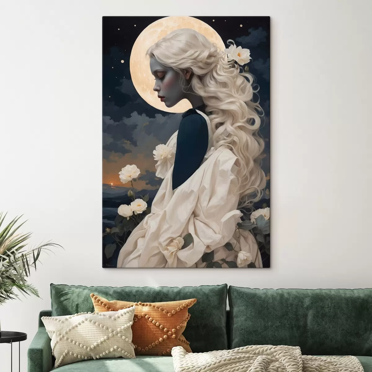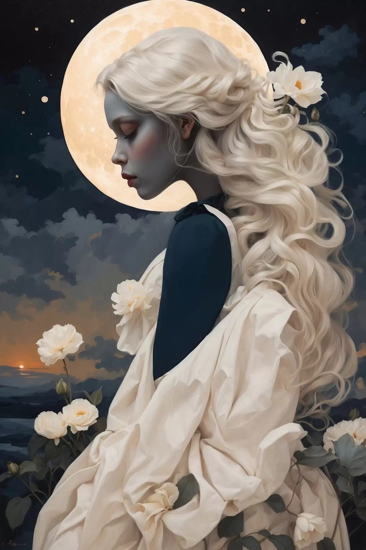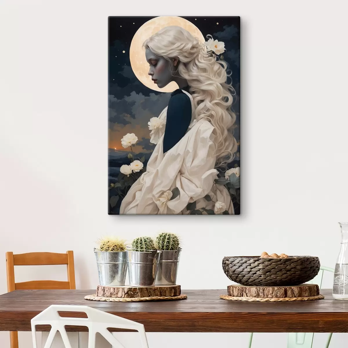 Cuadros Retrato de niña con pelo blanco y luna llena Nr s44887