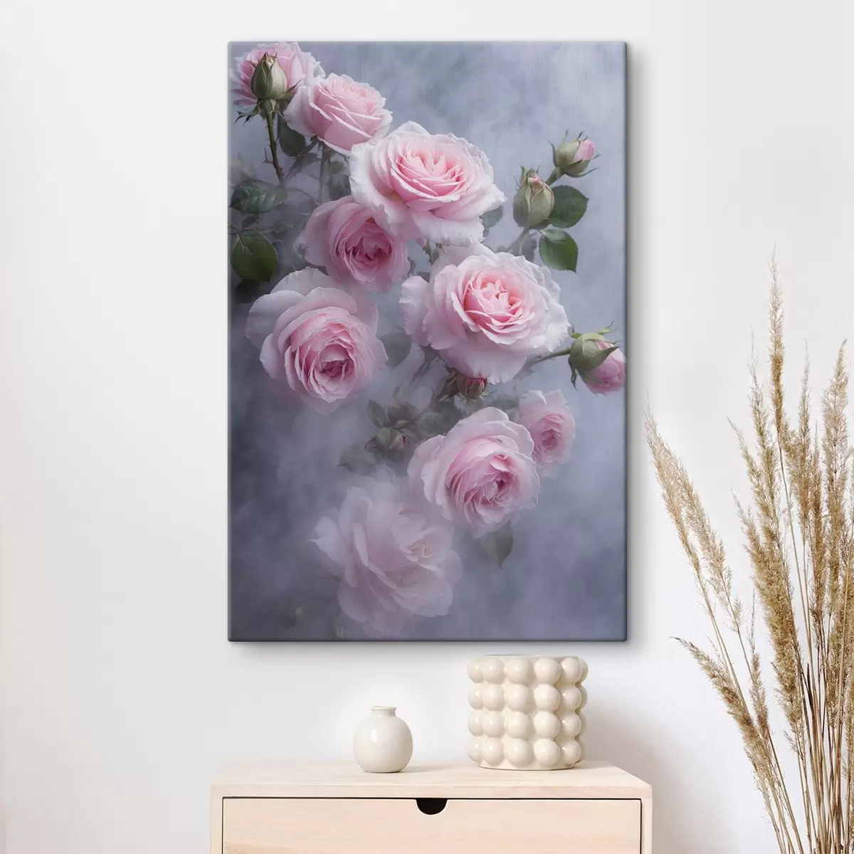 Cuadros Rosas suavemente rosadas en la niebla con hojas verdes Nr s44892