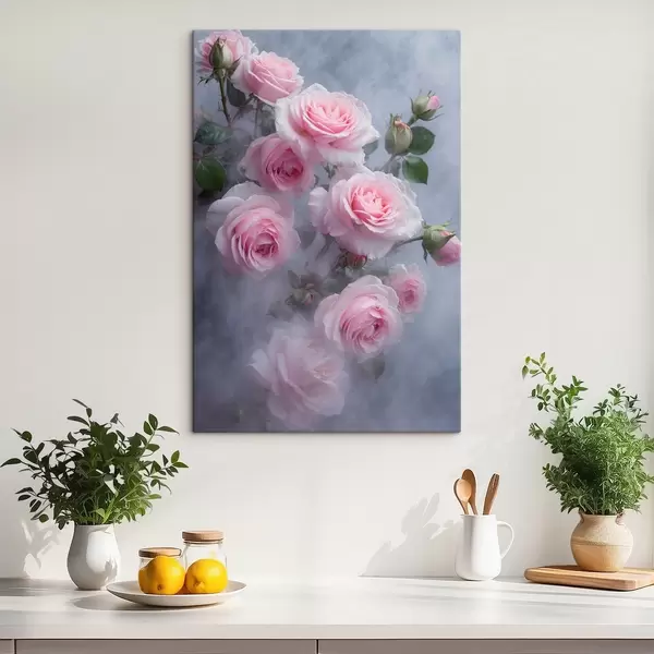 Cuadros Rosas suavemente rosadas en la niebla con hojas verdes Nr s44892