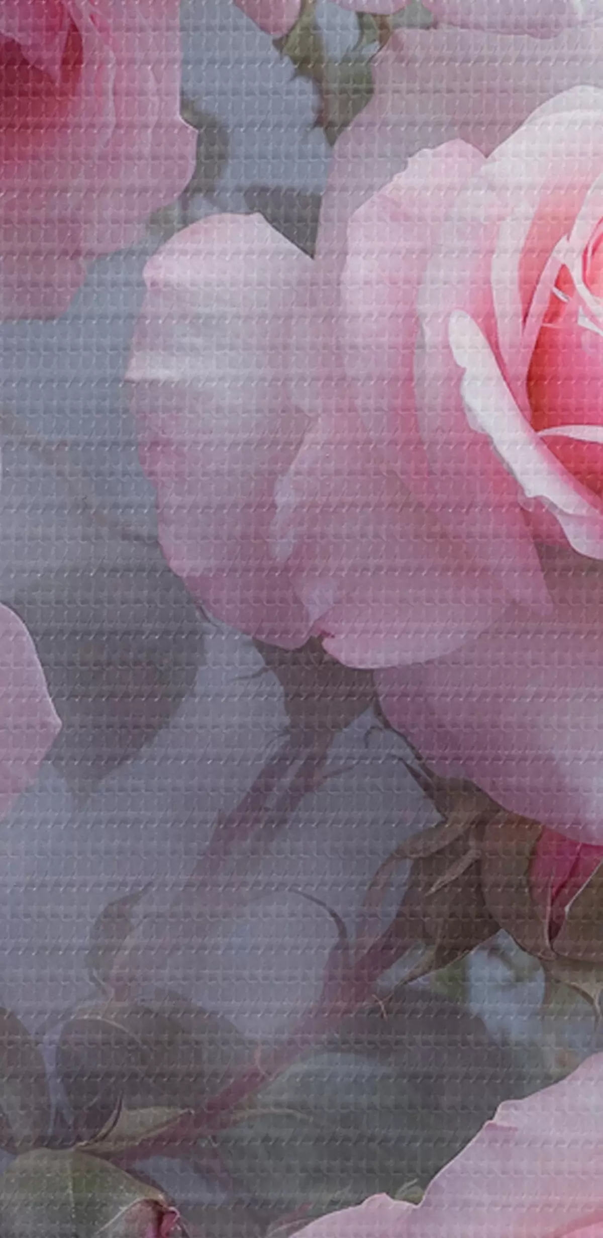 murales de pared Rosas suavemente rosadas en la niebla con hojas verdes s44892