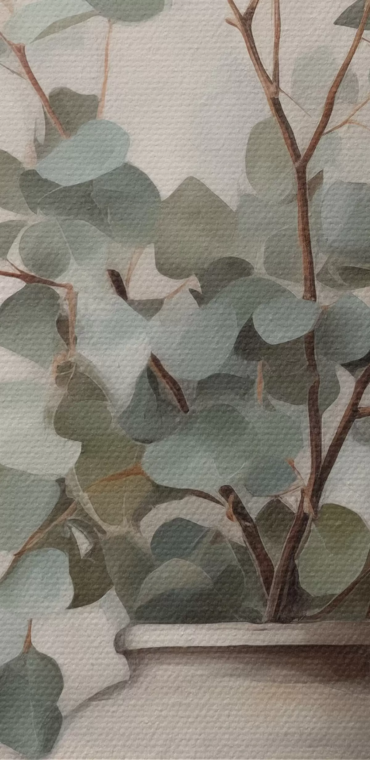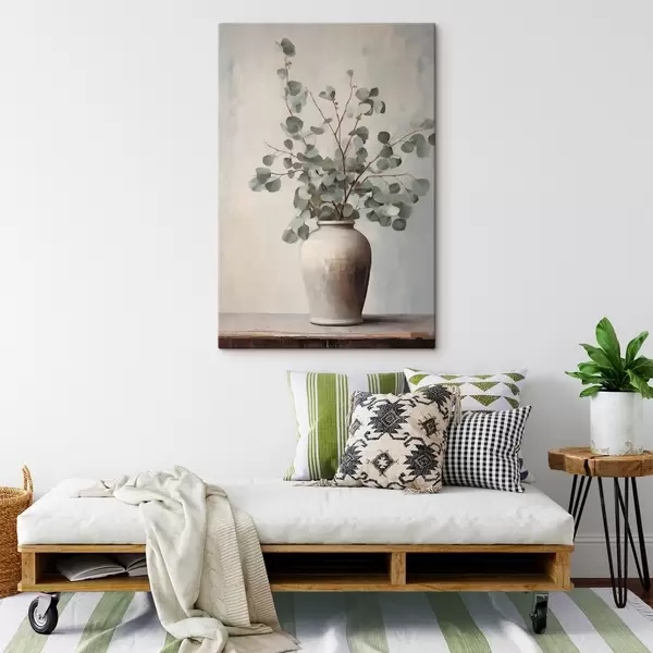 Cuadros Ramas de eucalipto en jarrón de barro Nr s44906