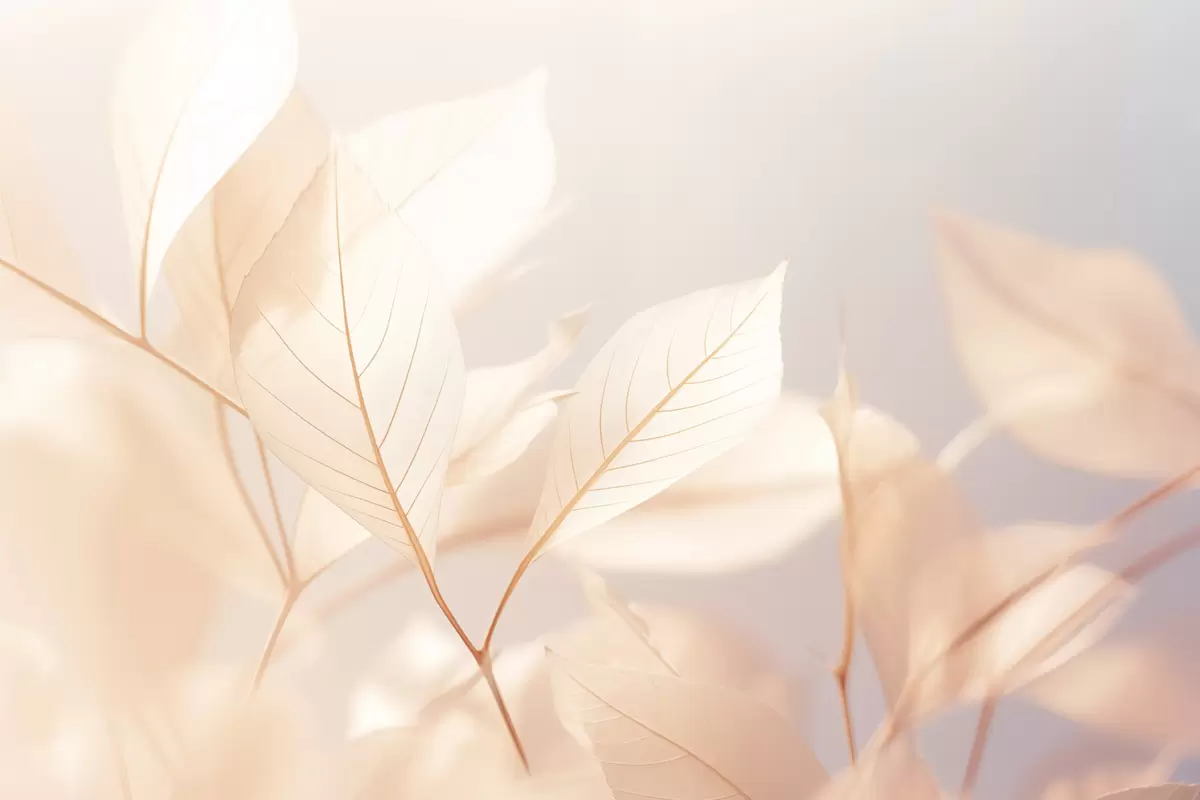 murales de pared Hojas translúcidas con intrincados dibujos de venas, suave paleta de colores pastel, iluminación etérea, composición minimalista s44928