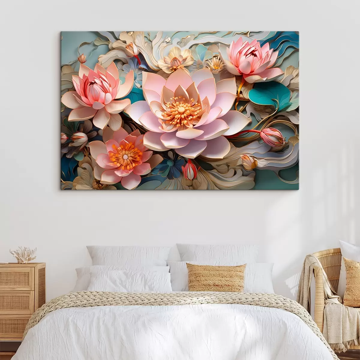 Cuadros Lotos rosa-naranja en estilo de dibujo 3D Nr s44934