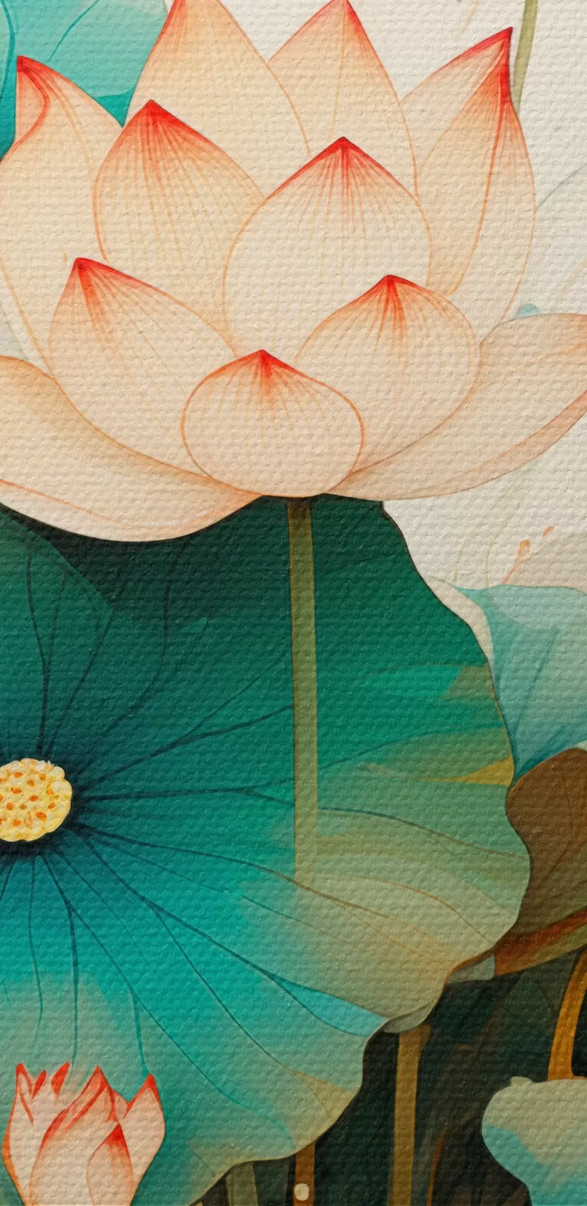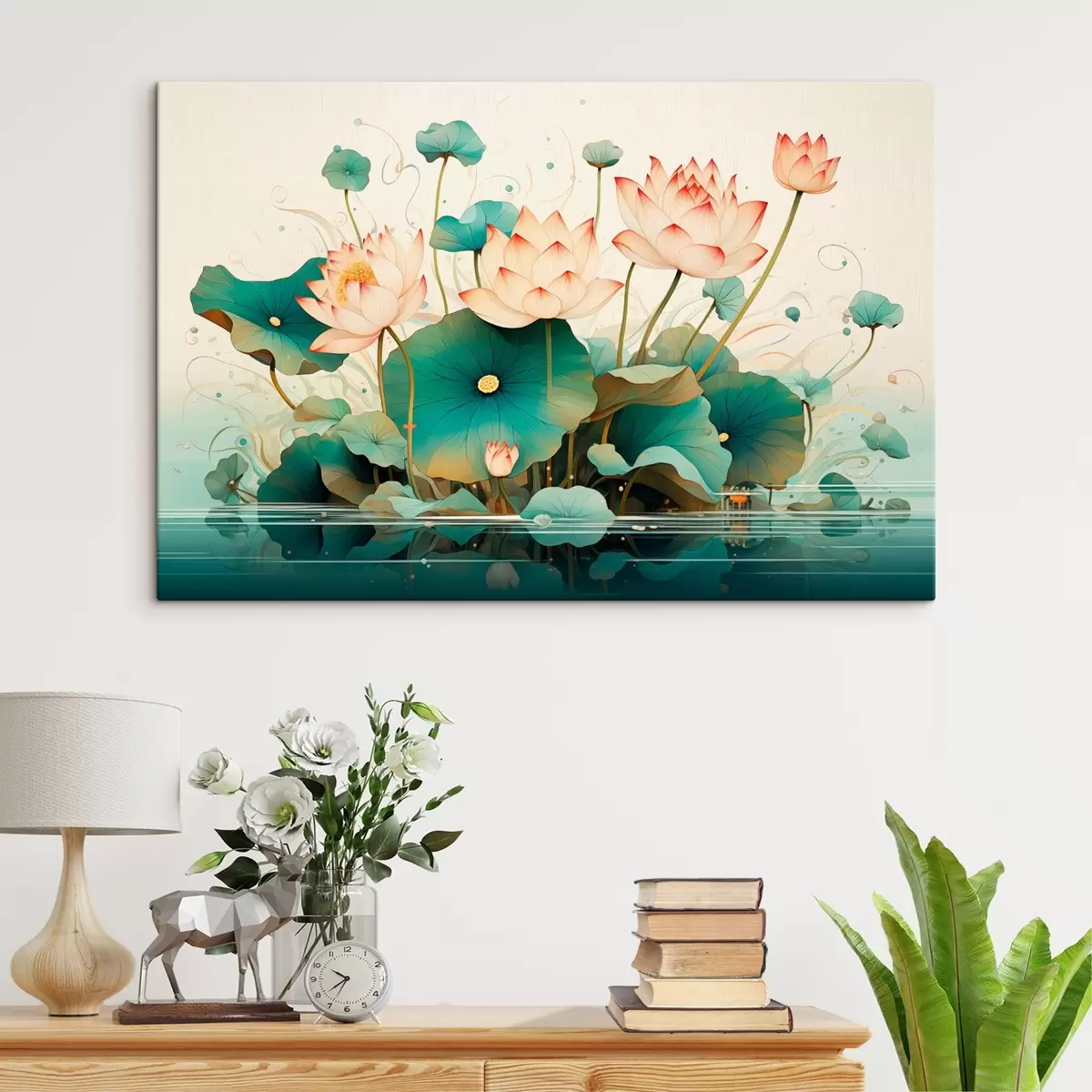 Cuadros Lotos con hojas grandes en estilo ilustración Nr s44939