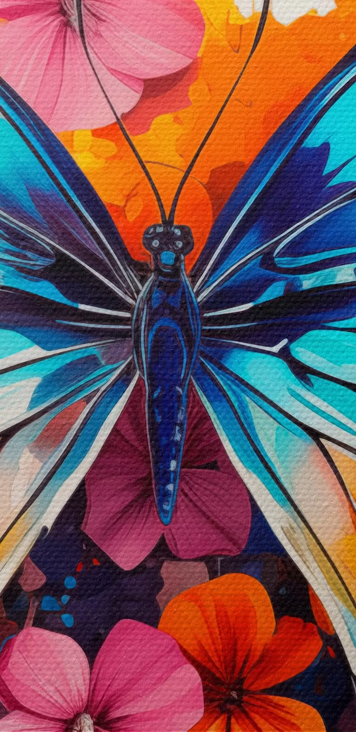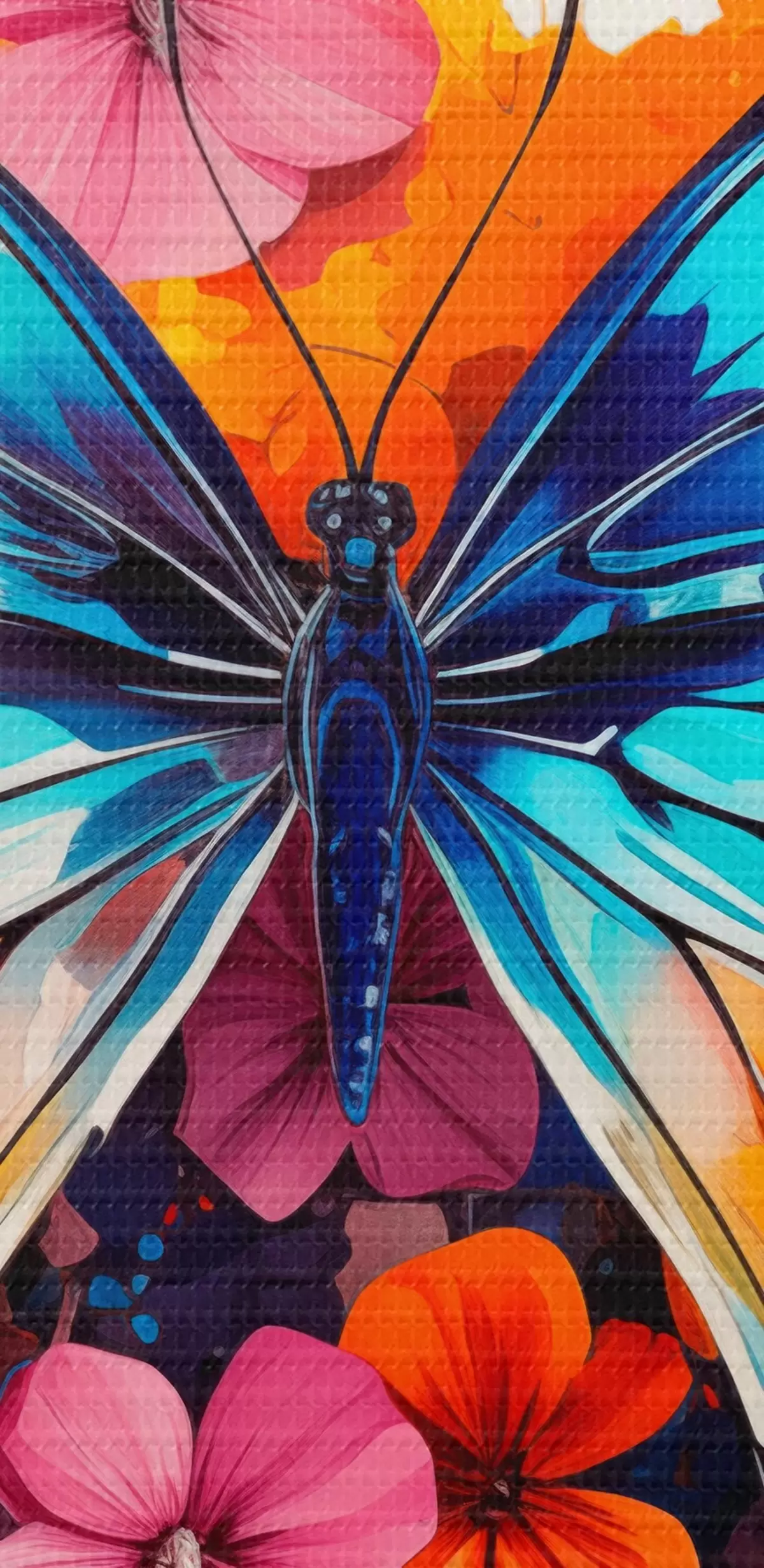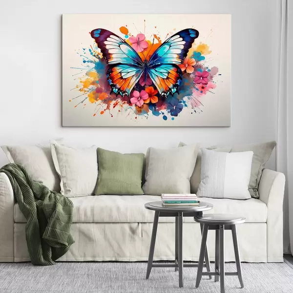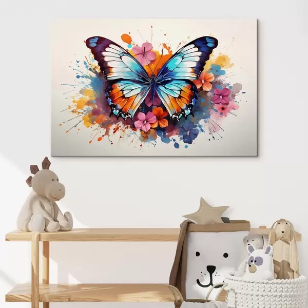 Cuadros Composición dinámica de una mariposa y manchas florales en estilo artístico Nr s44943