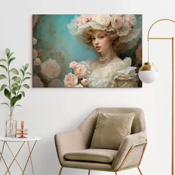 Cuadros Elegante dama con sombrero y flores en estilo artístico Nr s44944