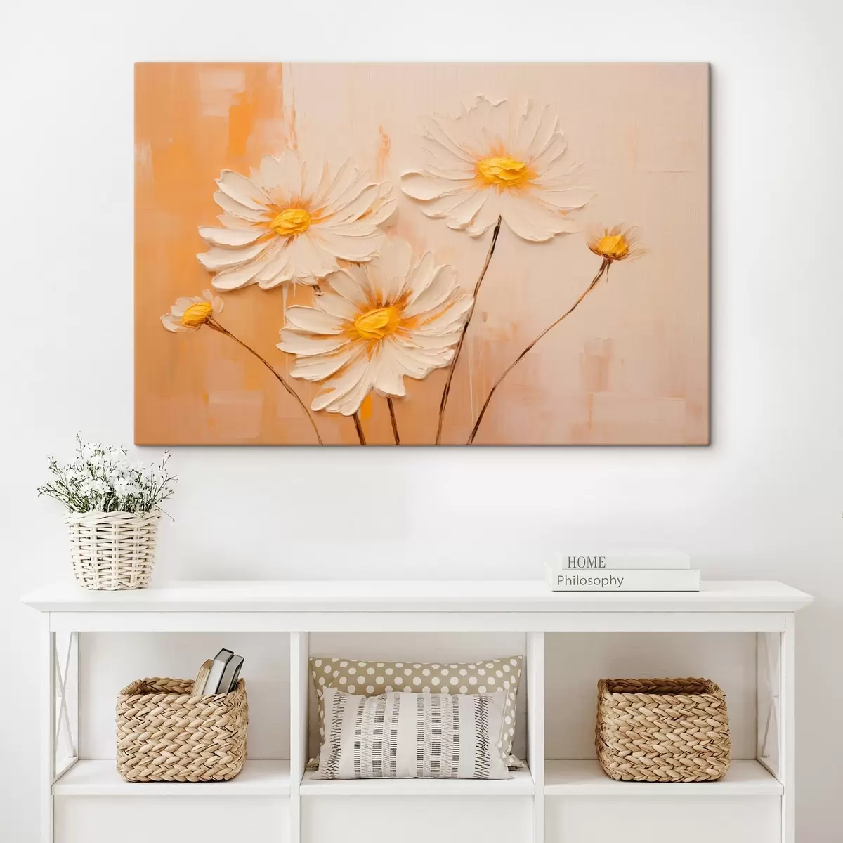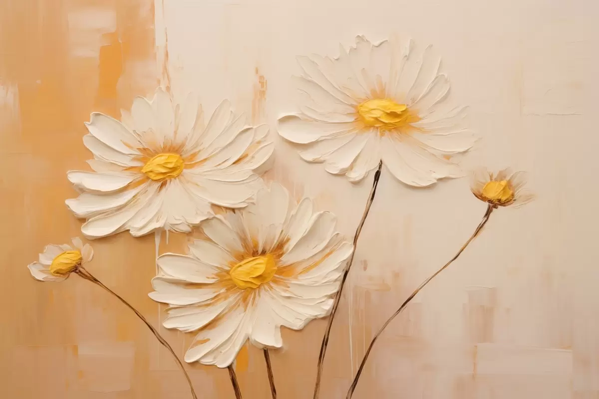 murales de pared Flores abstractas sobre fondo naranja al óleo s44945