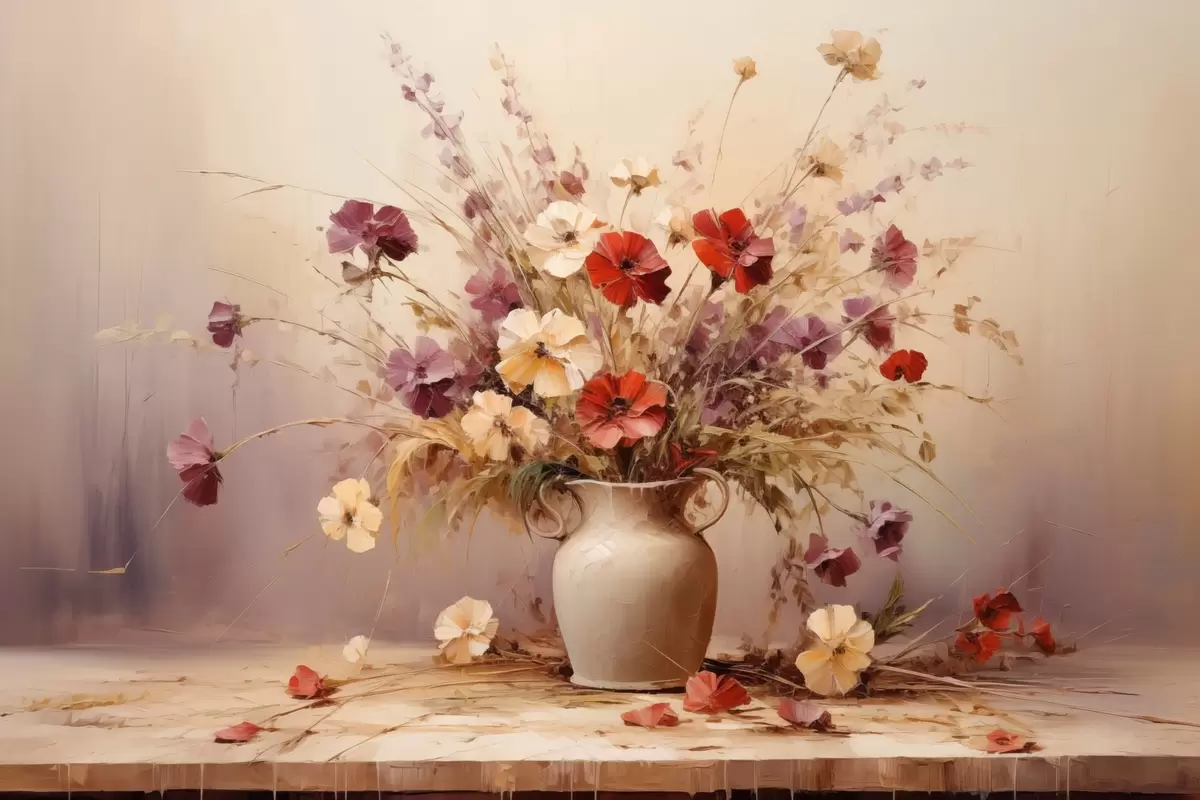murales de pared Ramo de flores silvestres en un jarrón al óleo s44947