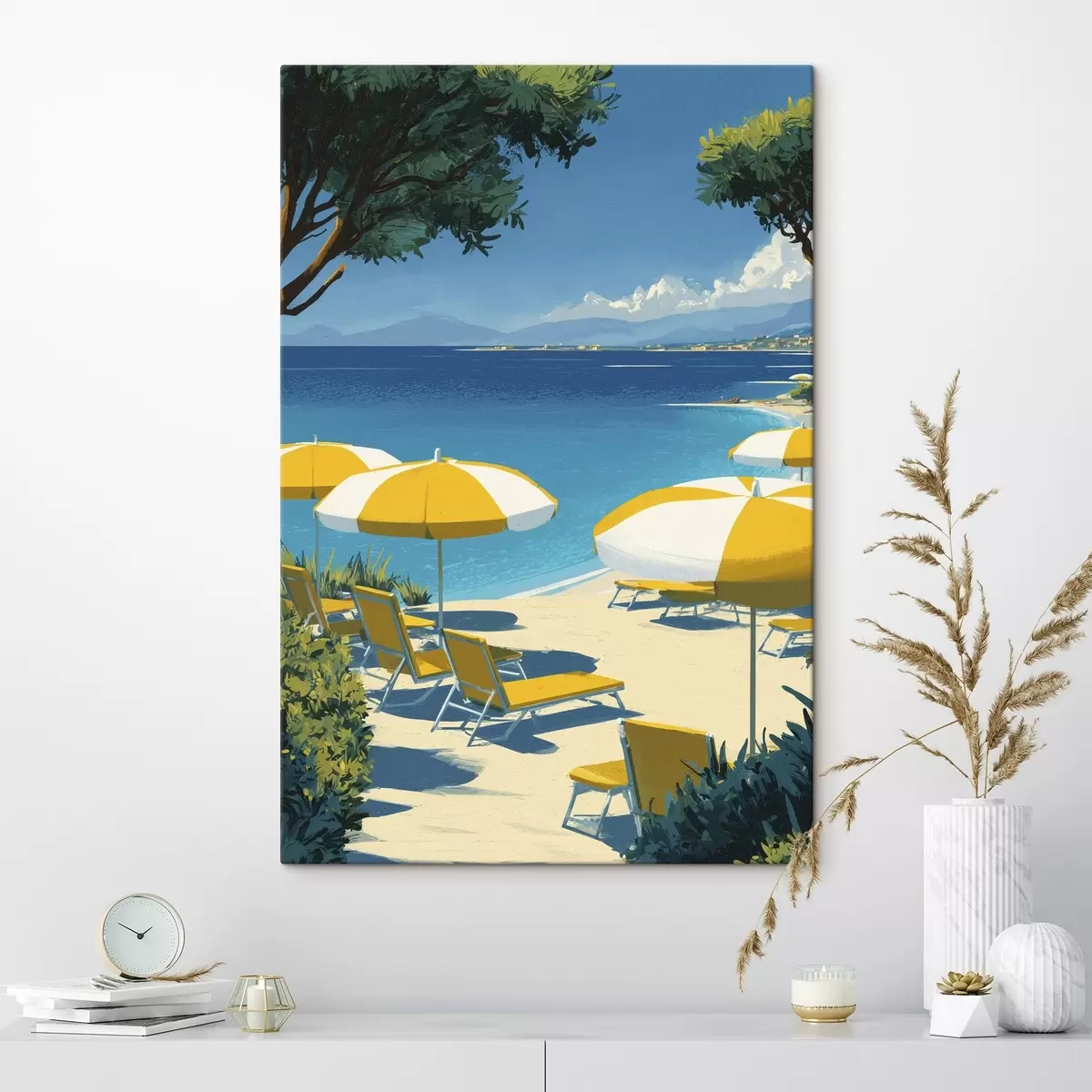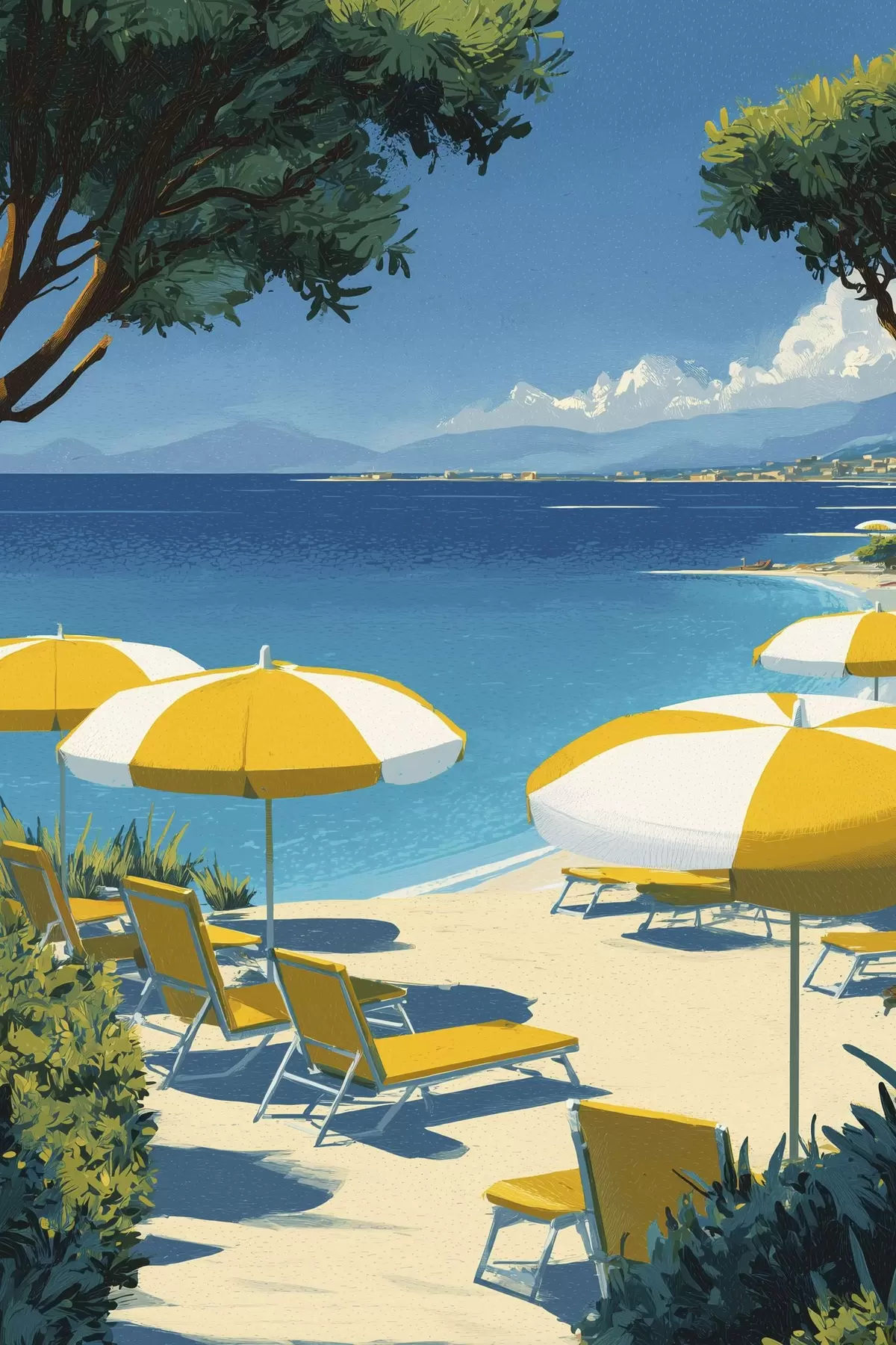 Cuadros Playa de verano con sombrillas y árboles Nr s44974