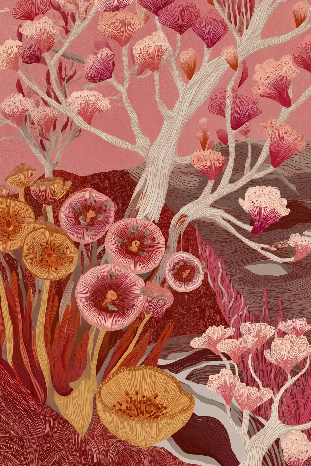 murales de pared Flores vintage, arte geométrico, dibujo estilo acrílico s44976