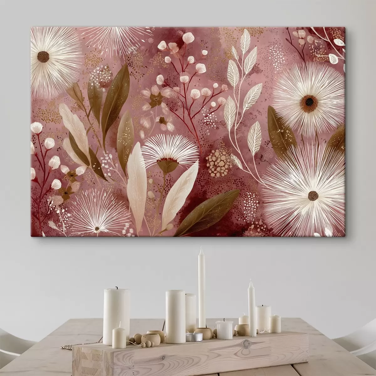 Cuadros Flores blancas de estilo boho sobre fondo rojo, dibujo detallado Nr s44979