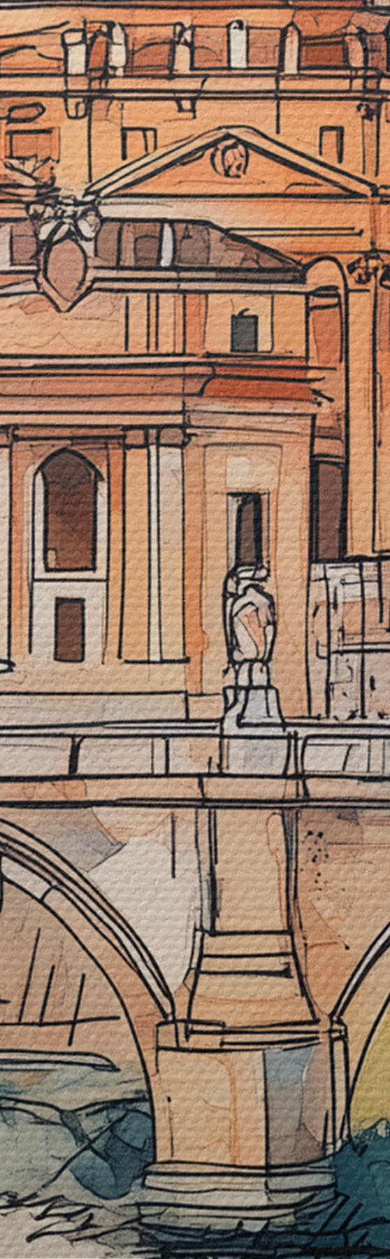 Cuadros Acuarela ciudad de Roma, dibujo de bosquejo, arquitectura Nr s44983