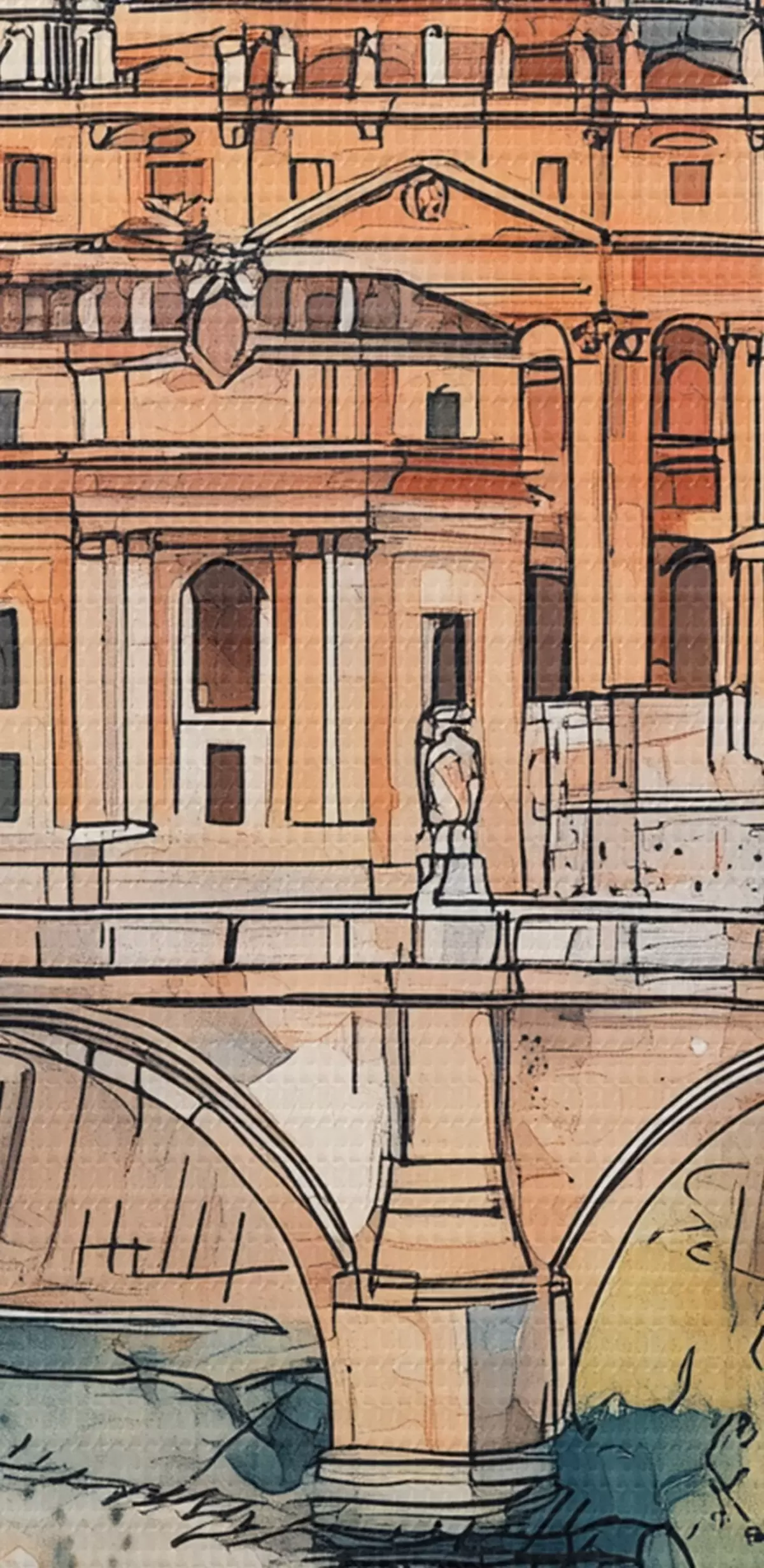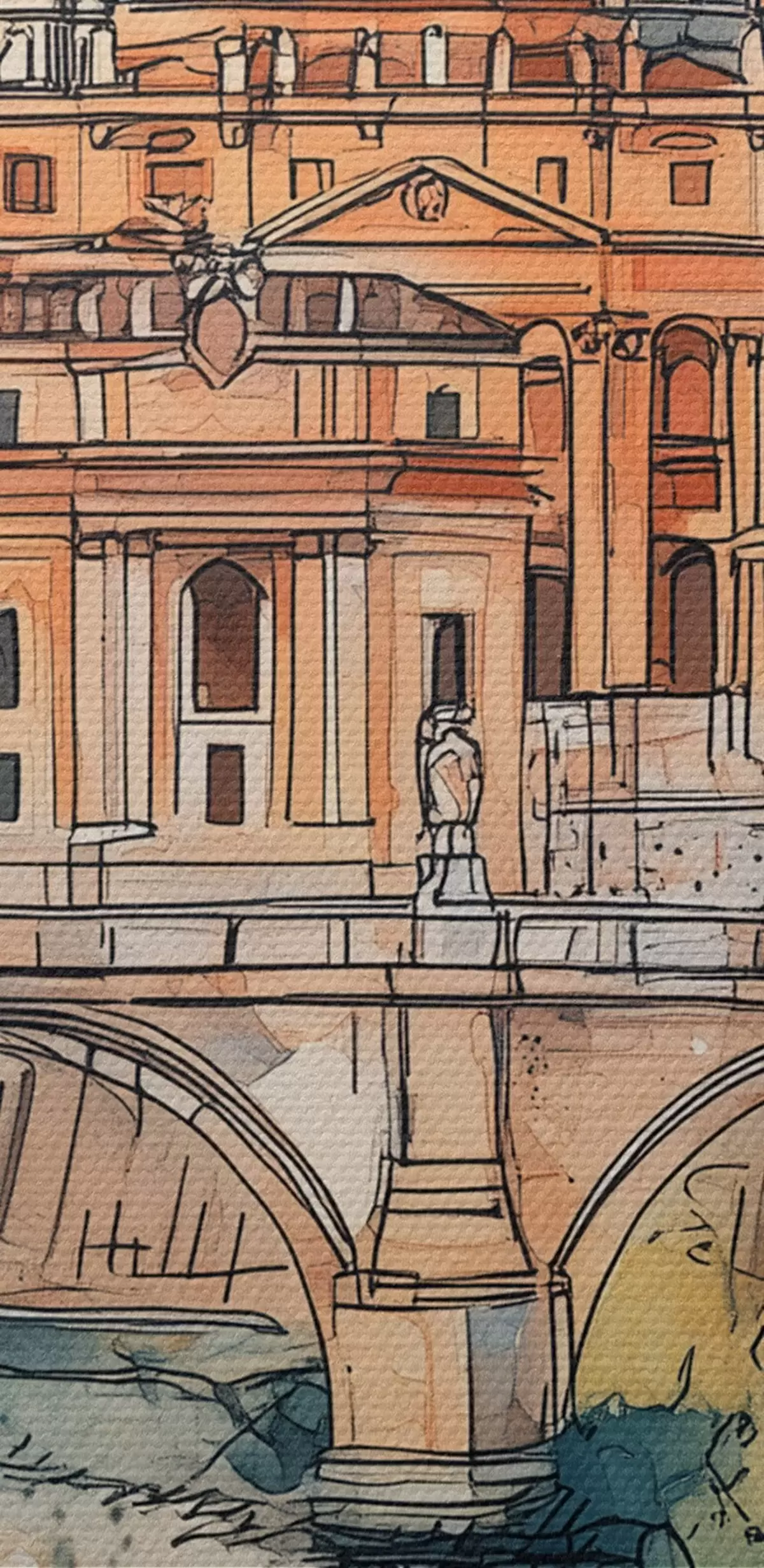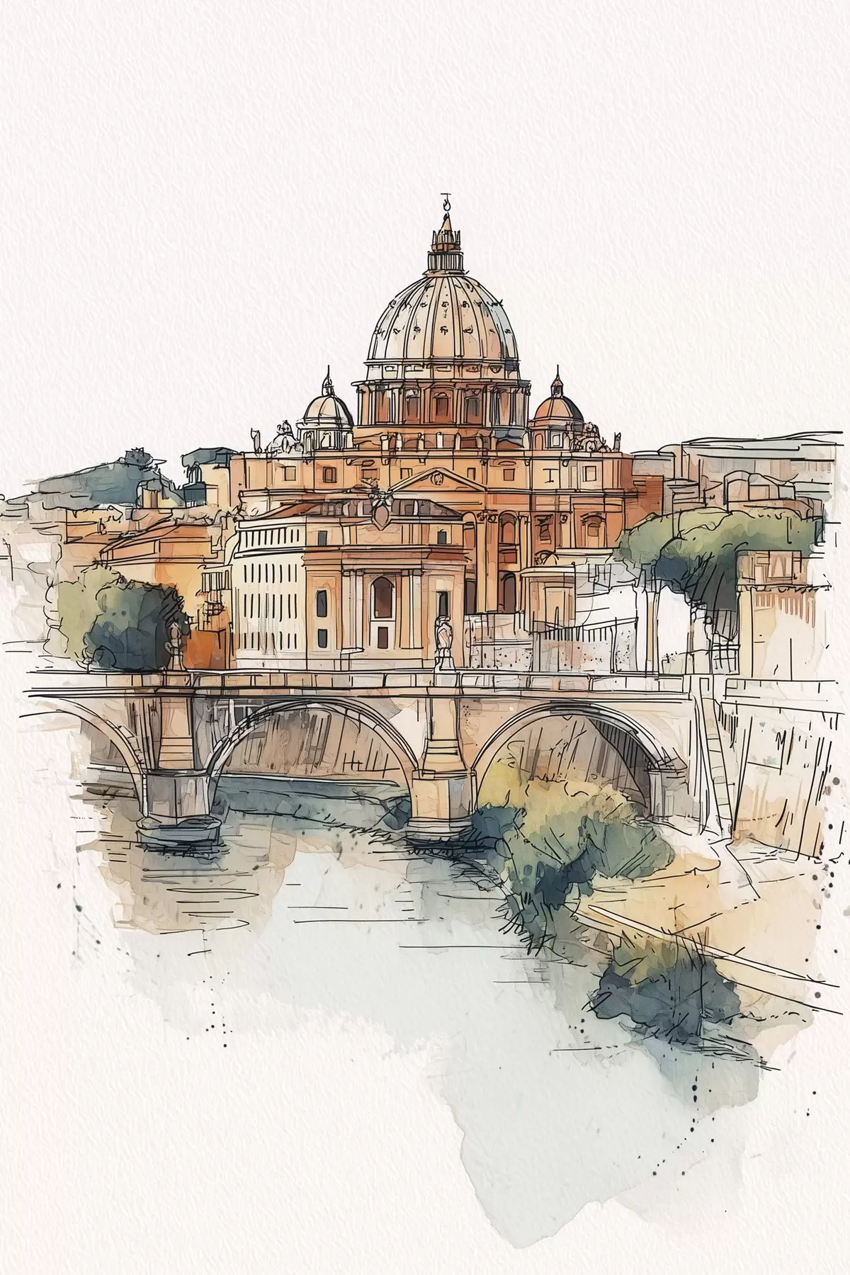 Cuadros Acuarela ciudad de Roma, dibujo de bosquejo, arquitectura Nr s44983