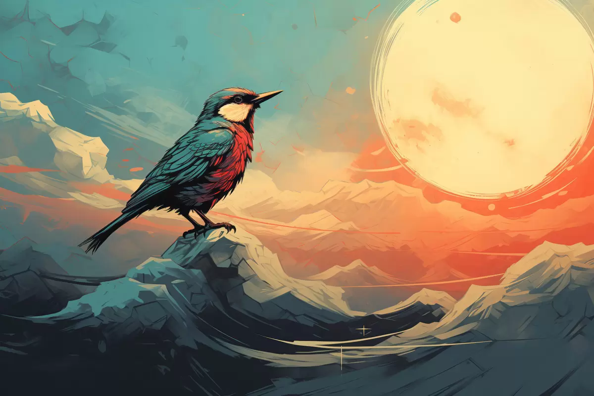 murales de pared Paisaje artístico con pájaro y cielo vibrante s45060