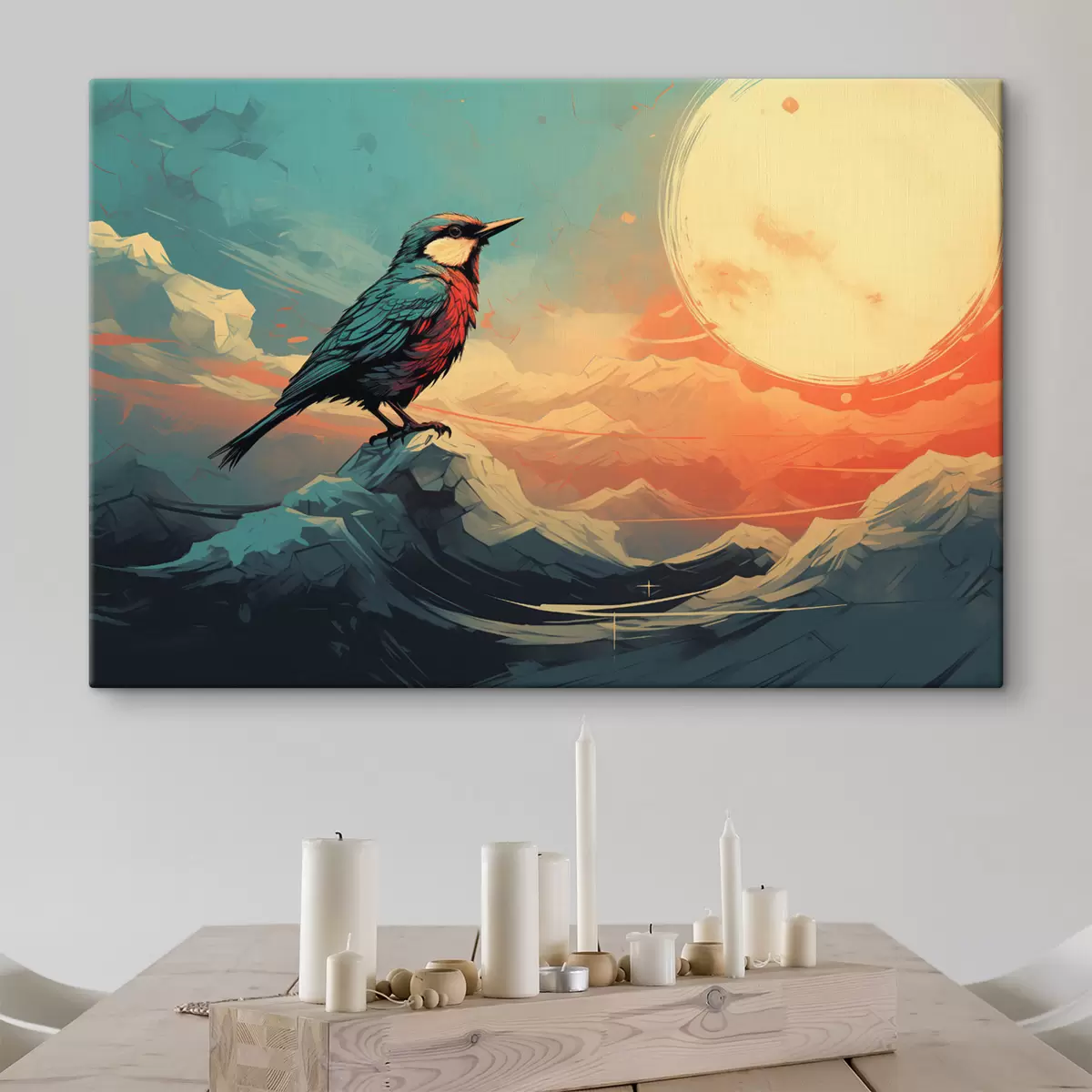 Cuadros Paisaje artístico con pájaro y cielo vibrante Nr s45060