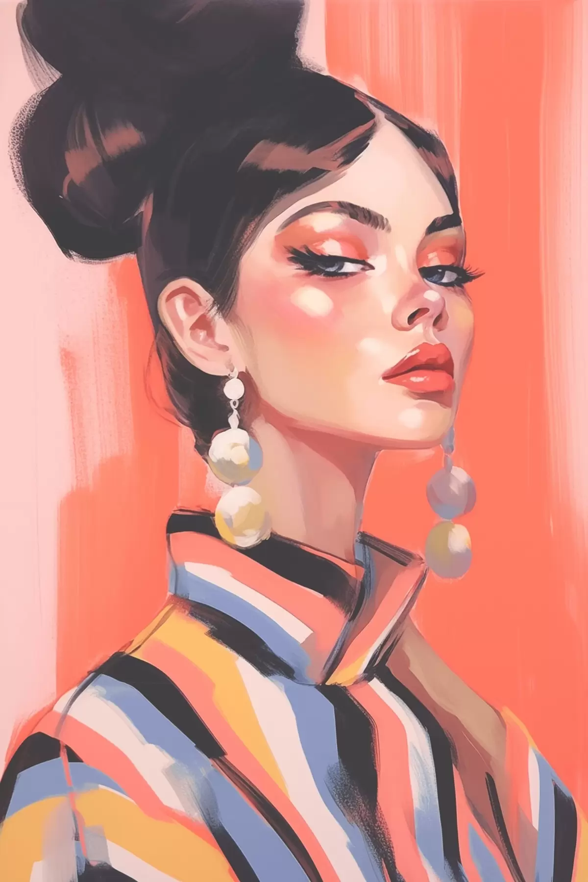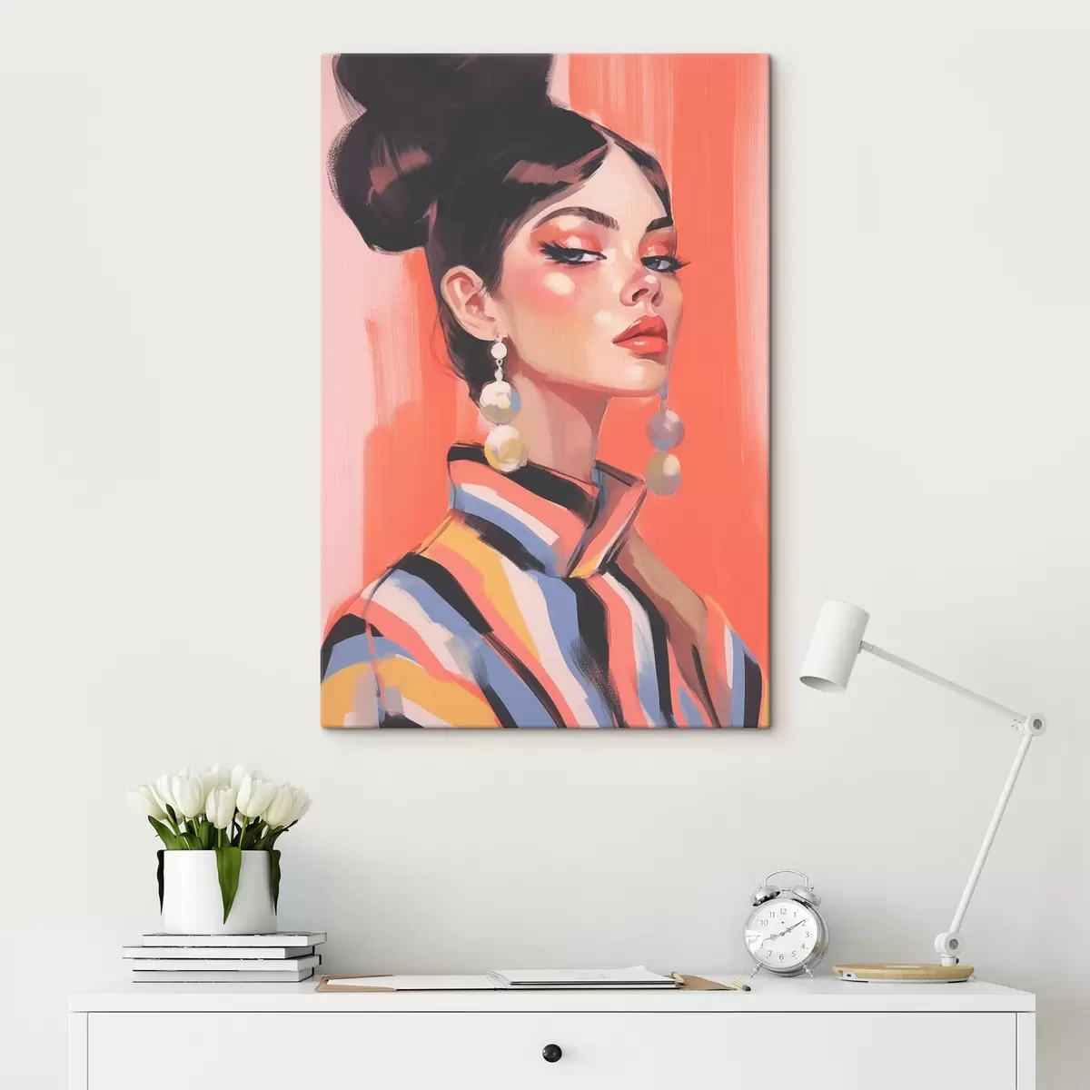 murales de pared Retrato de mujer con camisa de rayas s45079