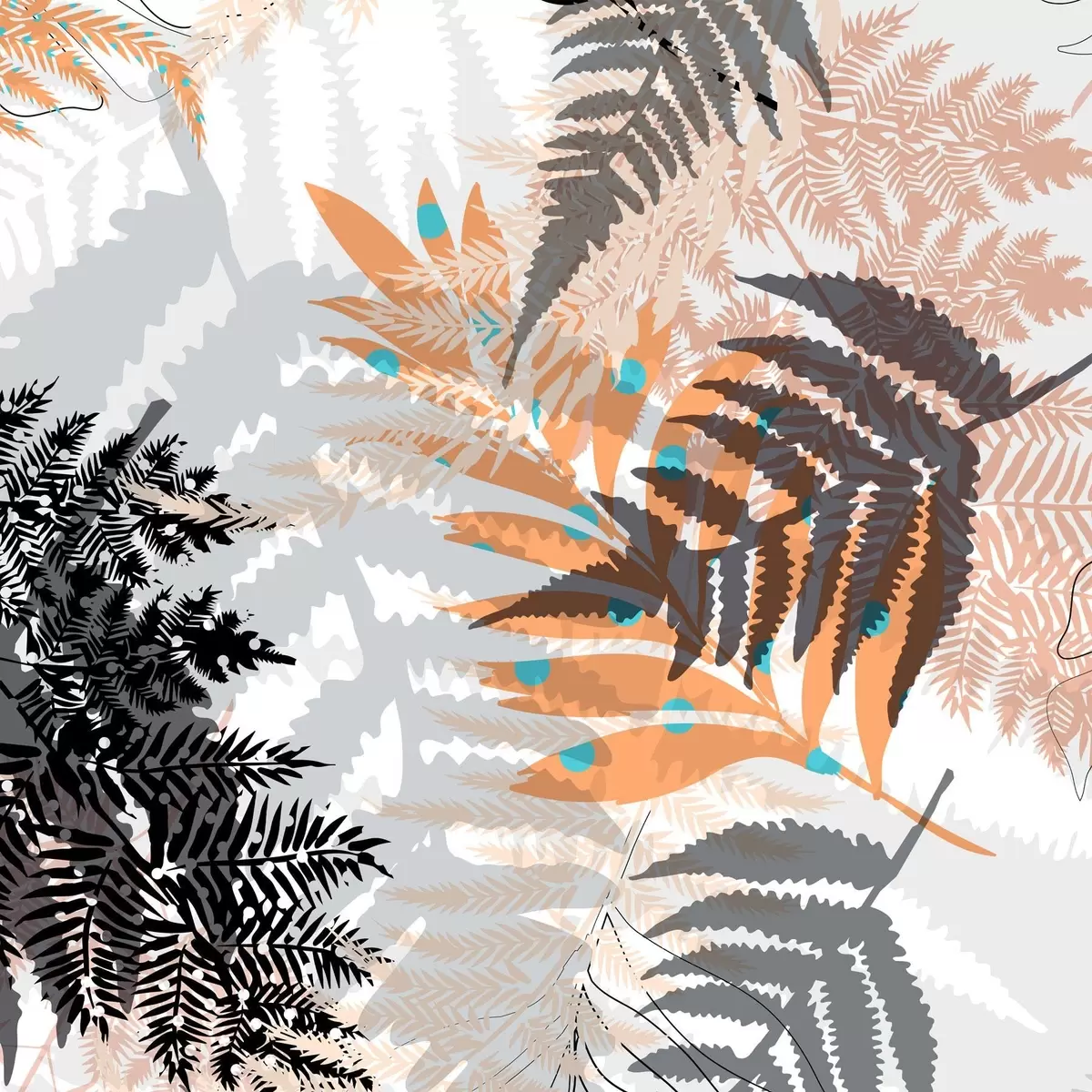 Cuadros follaje selvático, estilo moderno, arte lineal, plantas en capas, colores apagados, naturaleza Nr s45102