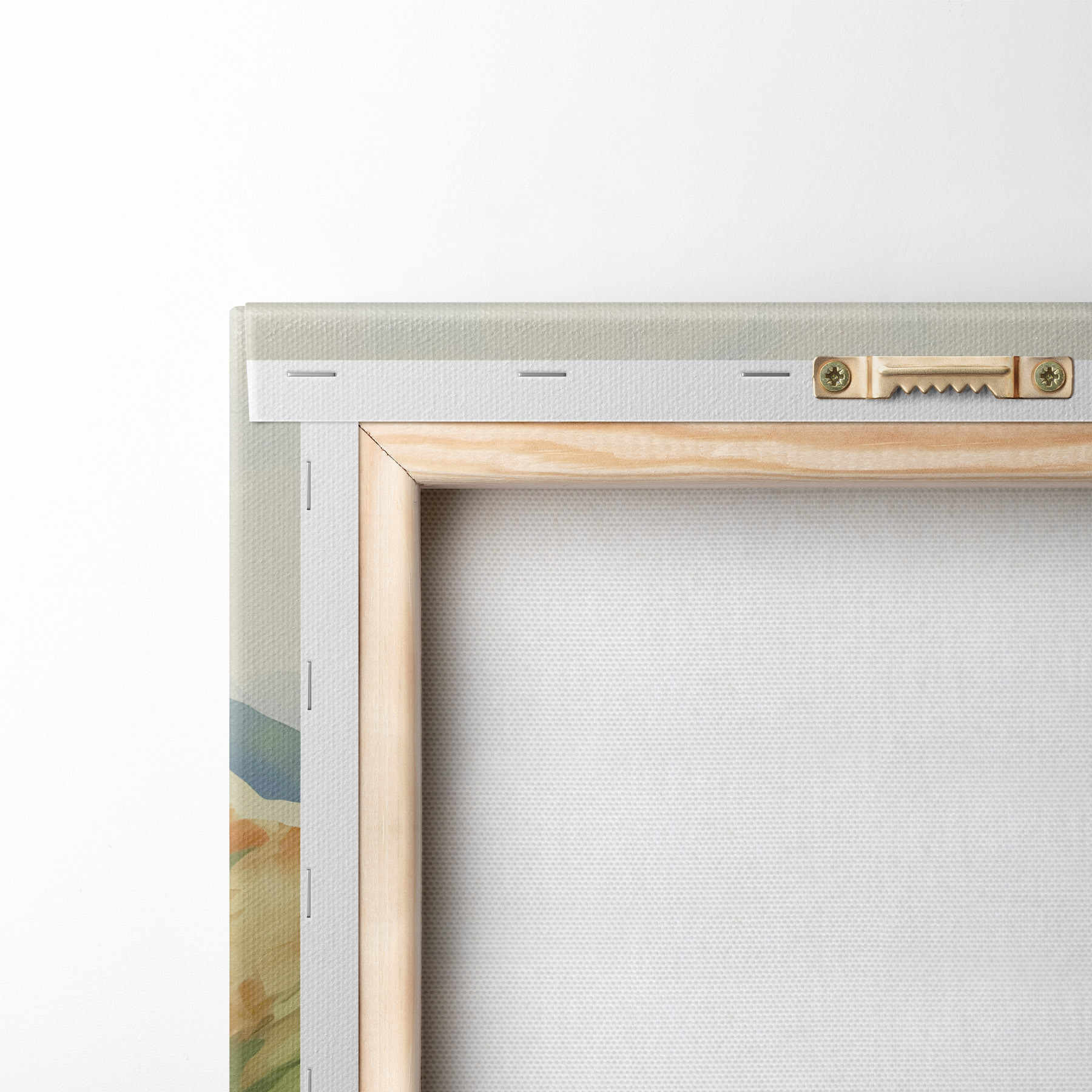 Vendemos cuadros en bastidor: se trata de un marco de madera sobre el que se extiende el lienzo. Este cuadro no necesita marco; puedes colgarlo directamente en la pared.