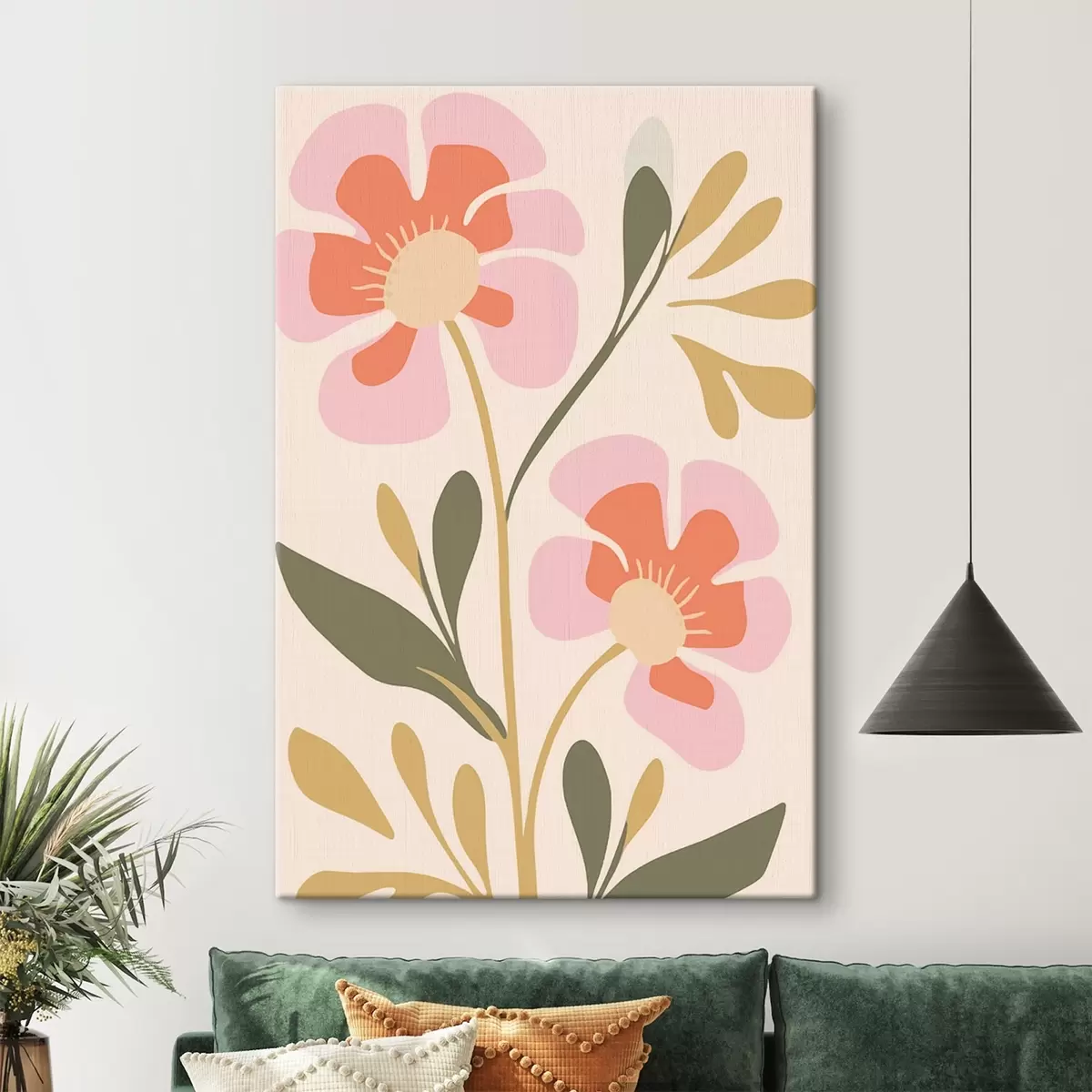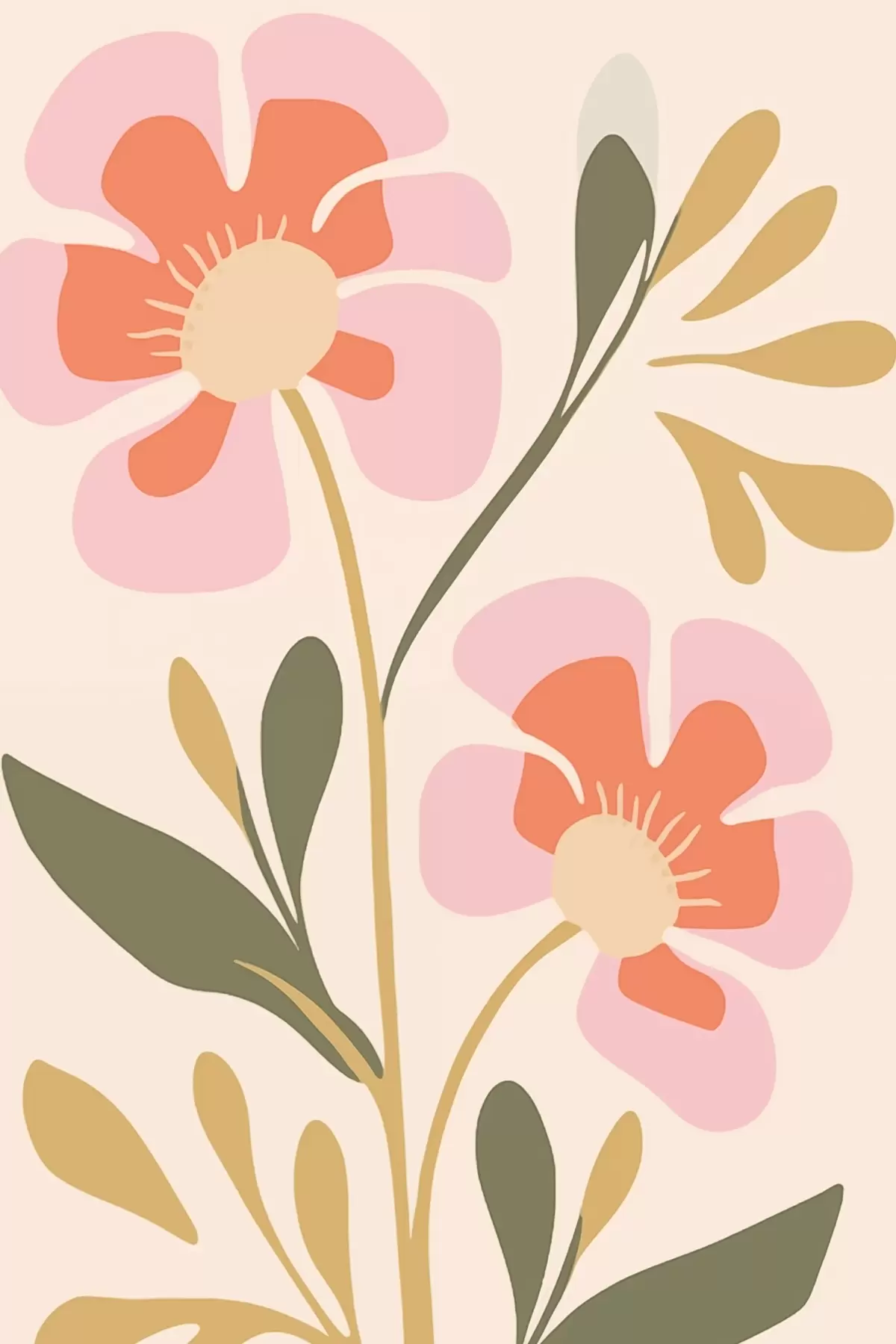 Cuadros Flores estilizadas rosas y naranjas con hojas verdes Nr s45140
