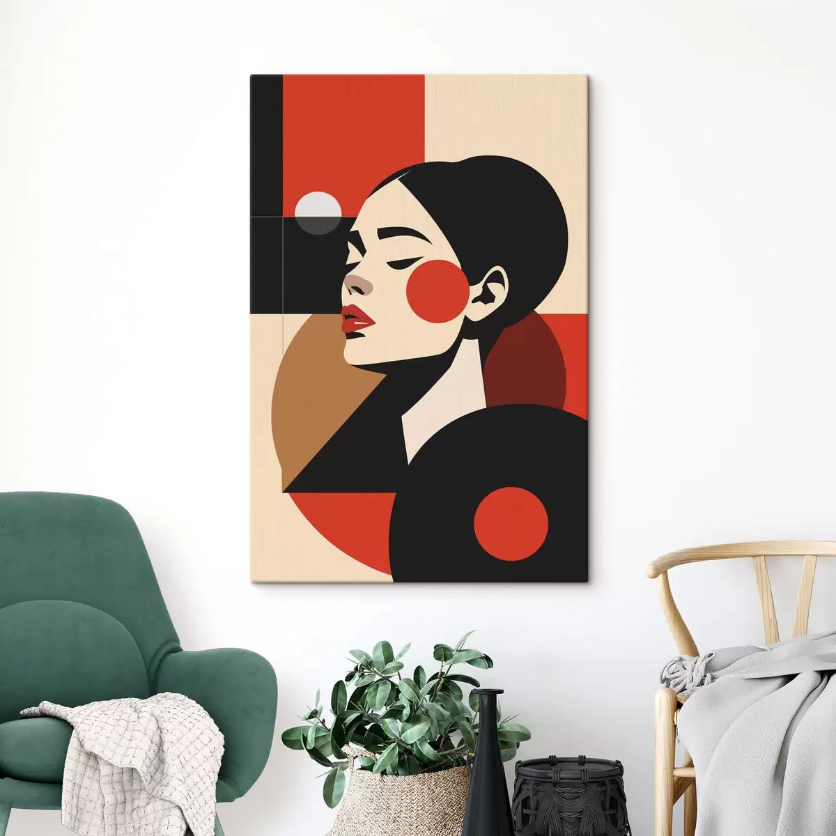 murales de pared Retrato abstracto de una mujer en estilo Bauhaus s45165