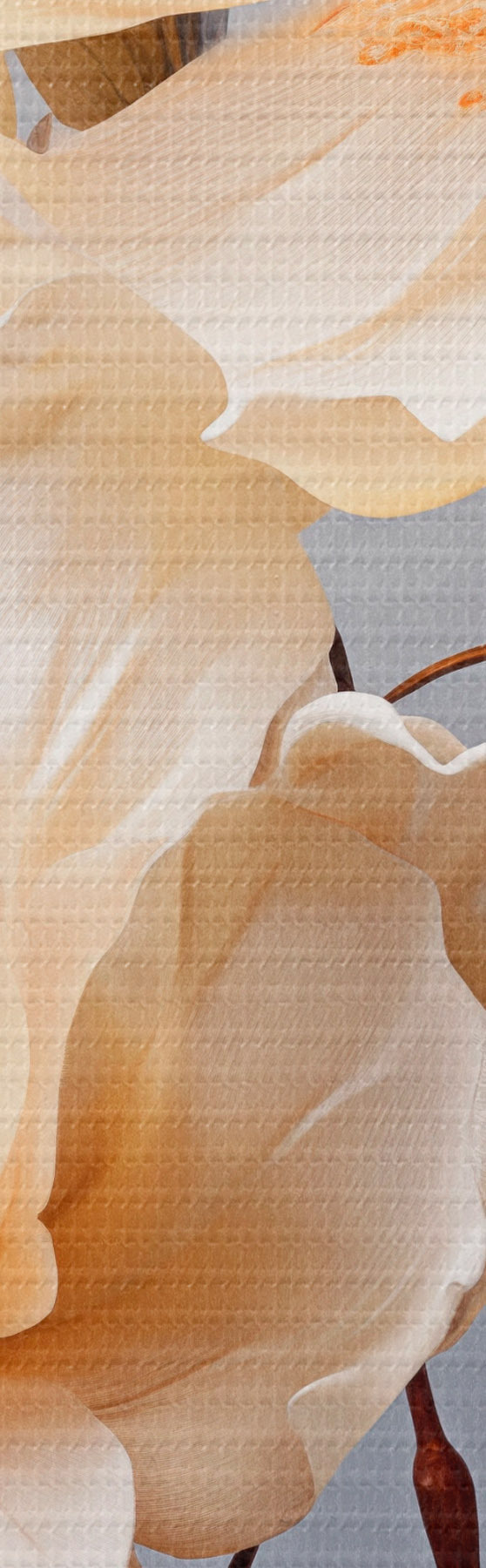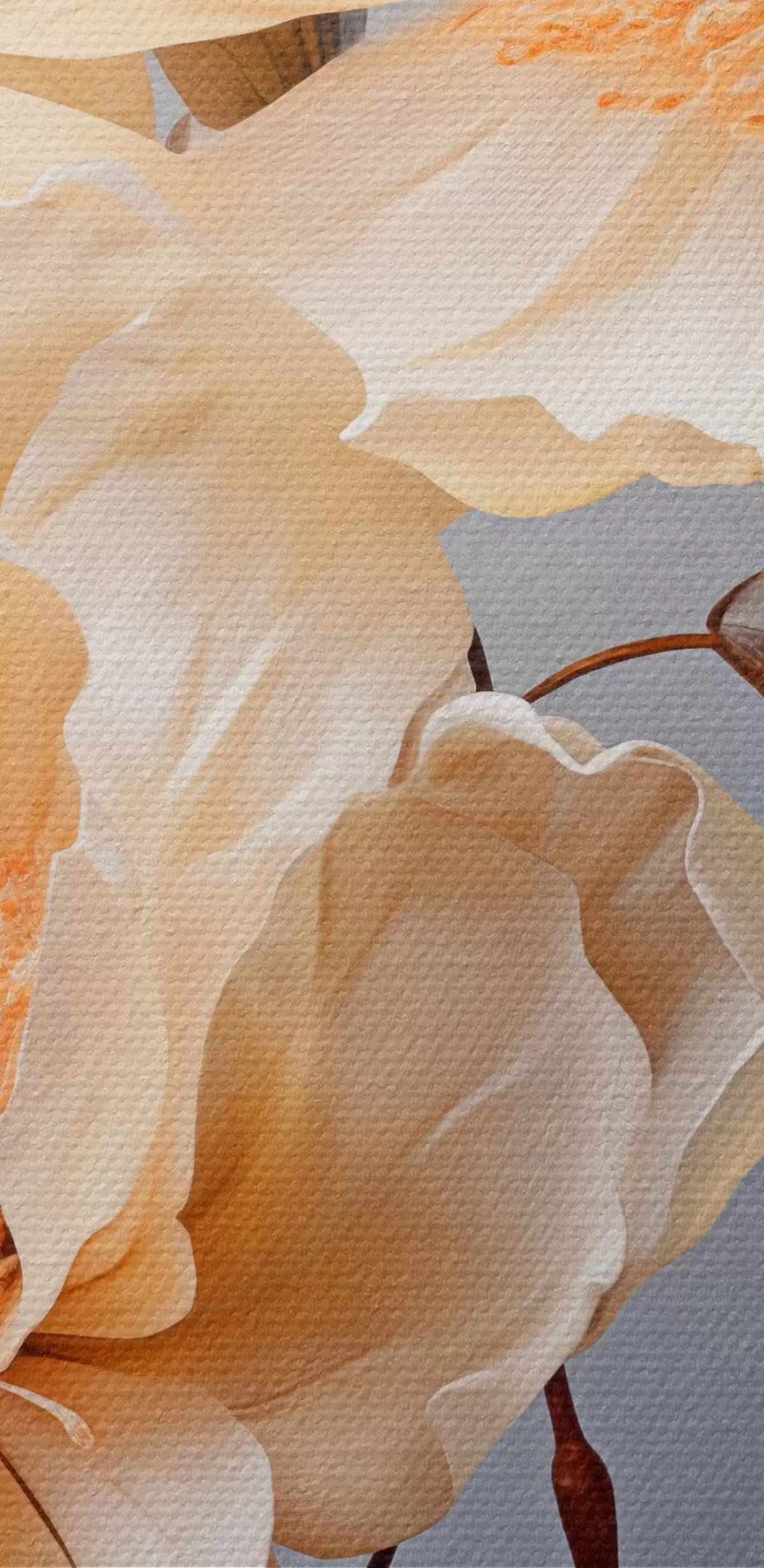 murales de pared Flores texturizadas con pistilos naranjas y hojas naranjas sobre fondo gris, luz suave, elegante, detallado, realista s45182