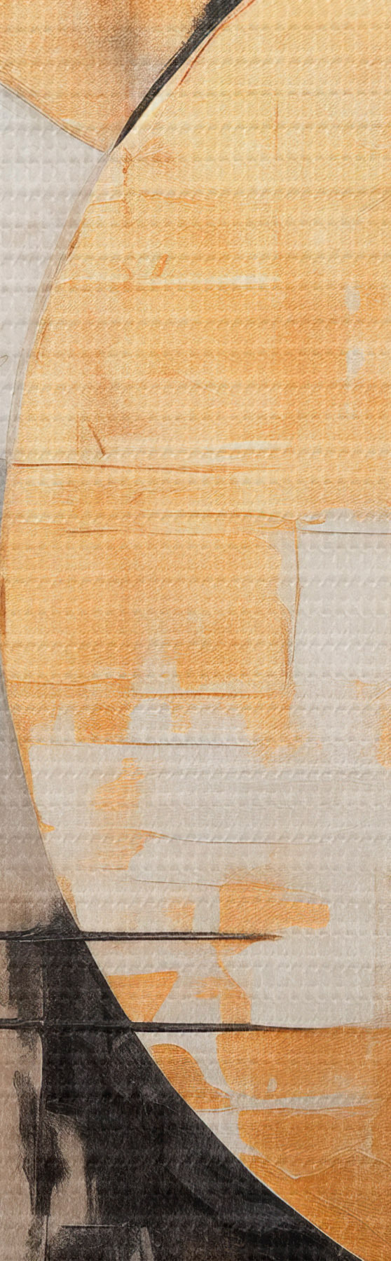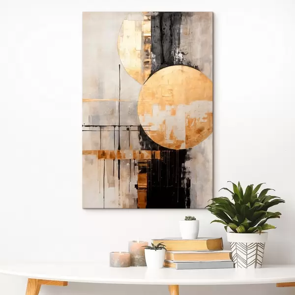 Cuadros Cuadro abstracto con círculos, líneas negras y amarillas, y un fondo con tonos grises y blancos Nr s45185