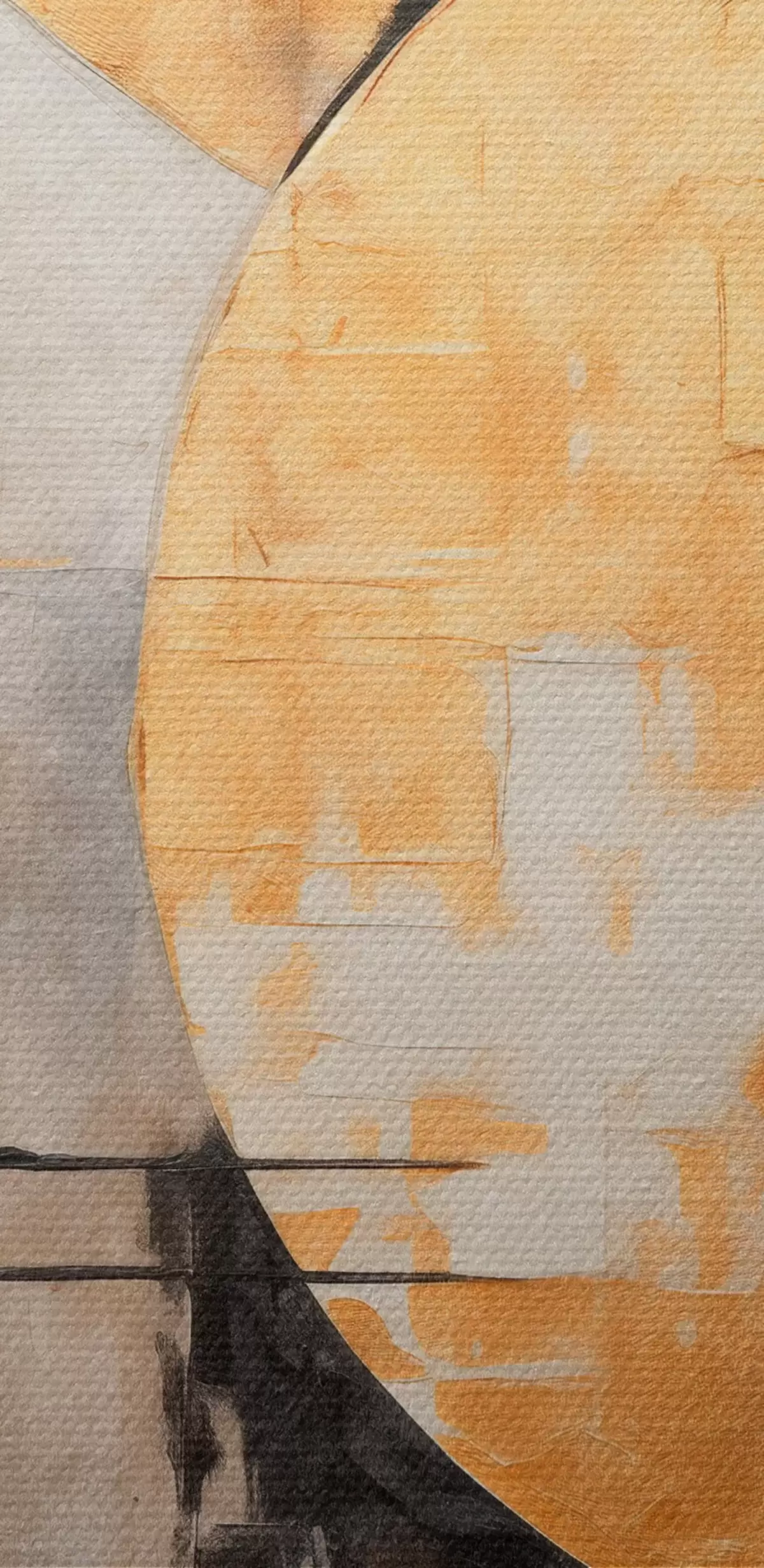 Cuadros Cuadro abstracto con círculos, líneas negras y amarillas, y un fondo con tonos grises y blancos Nr s45185