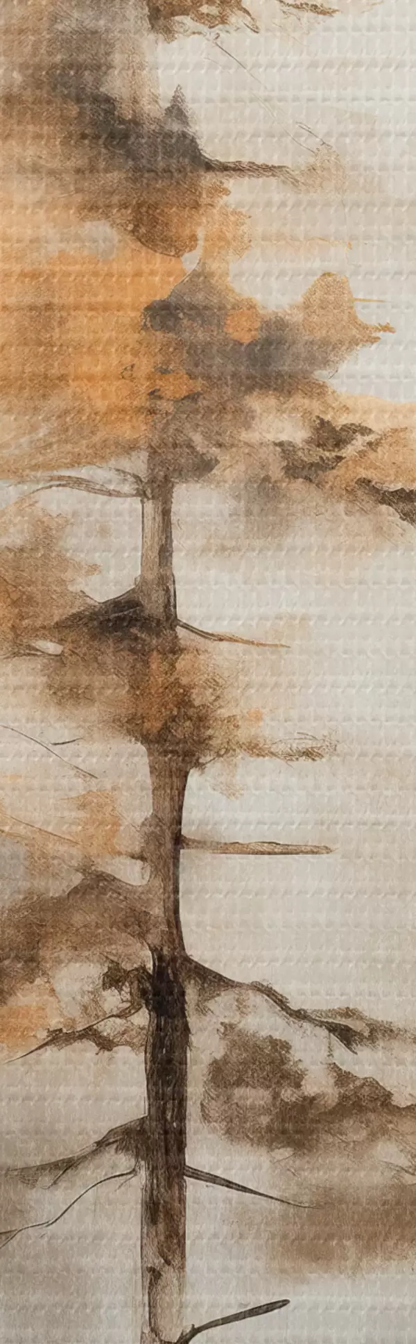 murales de pared Árboles altos con textura y hojas amarillas en un bosque , el fondo es una mezcla de suaves tonos azules y marrones s45188