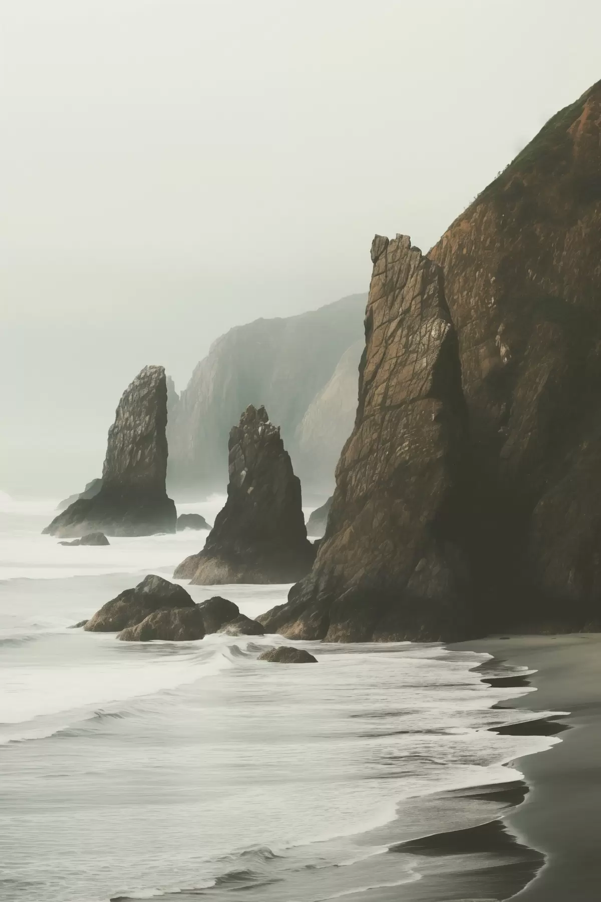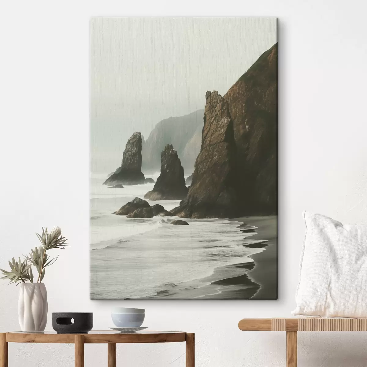 Cuadros Acantilados rocosos y litoral marino, olas rompiendo en la orilla, paisaje con una atmósfera malhumorada, tonos terrosos Nr s45193