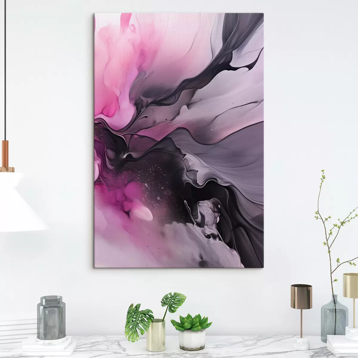 Cuadros Remolinos abstractos de color rosa, morado y negro se mezclan en una composición fluida y orgánica, creando una sensación de movimiento Nr s45196